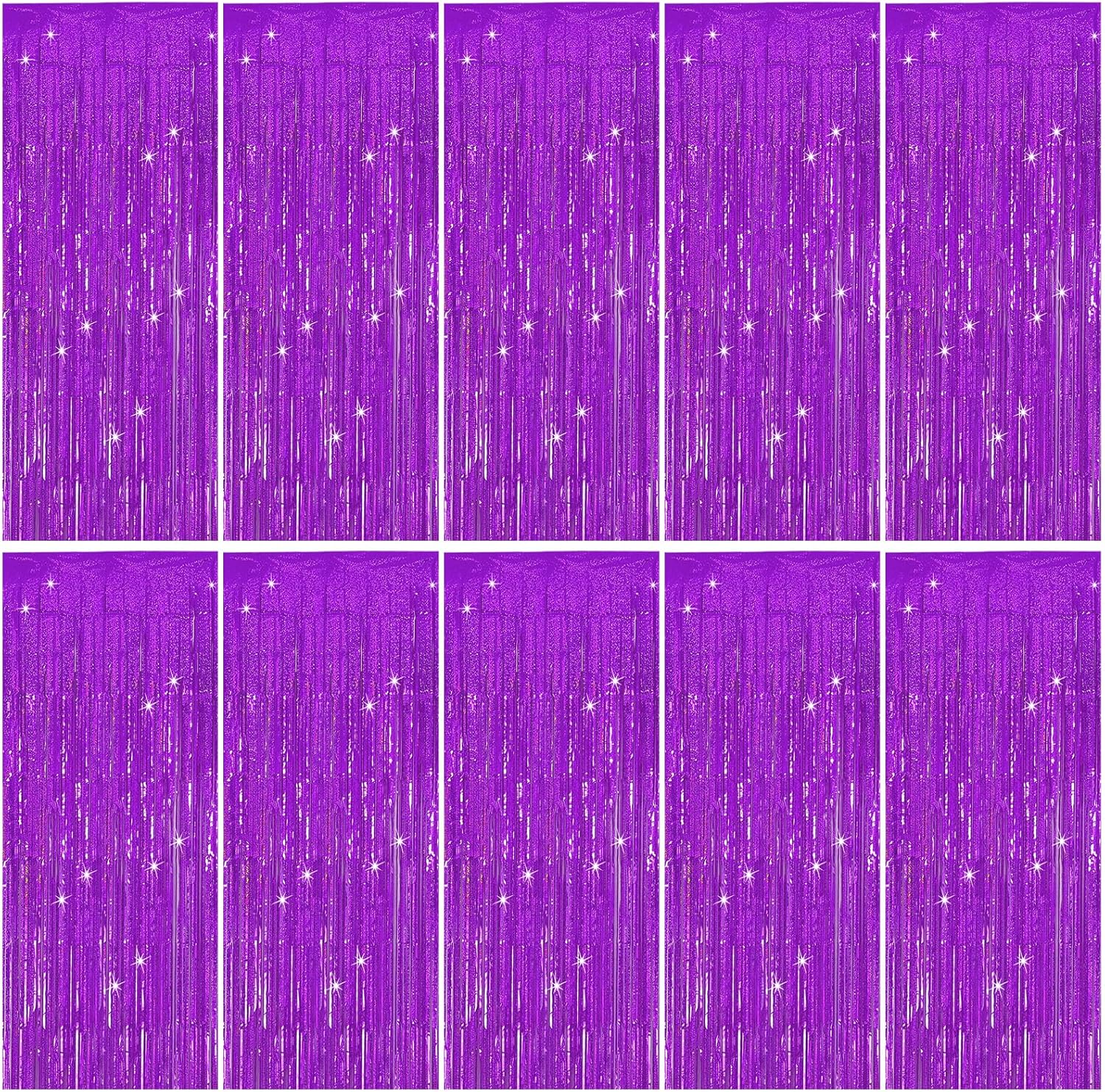 Tinsel Curtain Party Backdrop Purple Birthday Decorations 10 Packs Glitter Foil Fringe Curtain Party Decor Streamers Photo Booth for Birthday Christmas Wedding Halloween Graduation Decorations