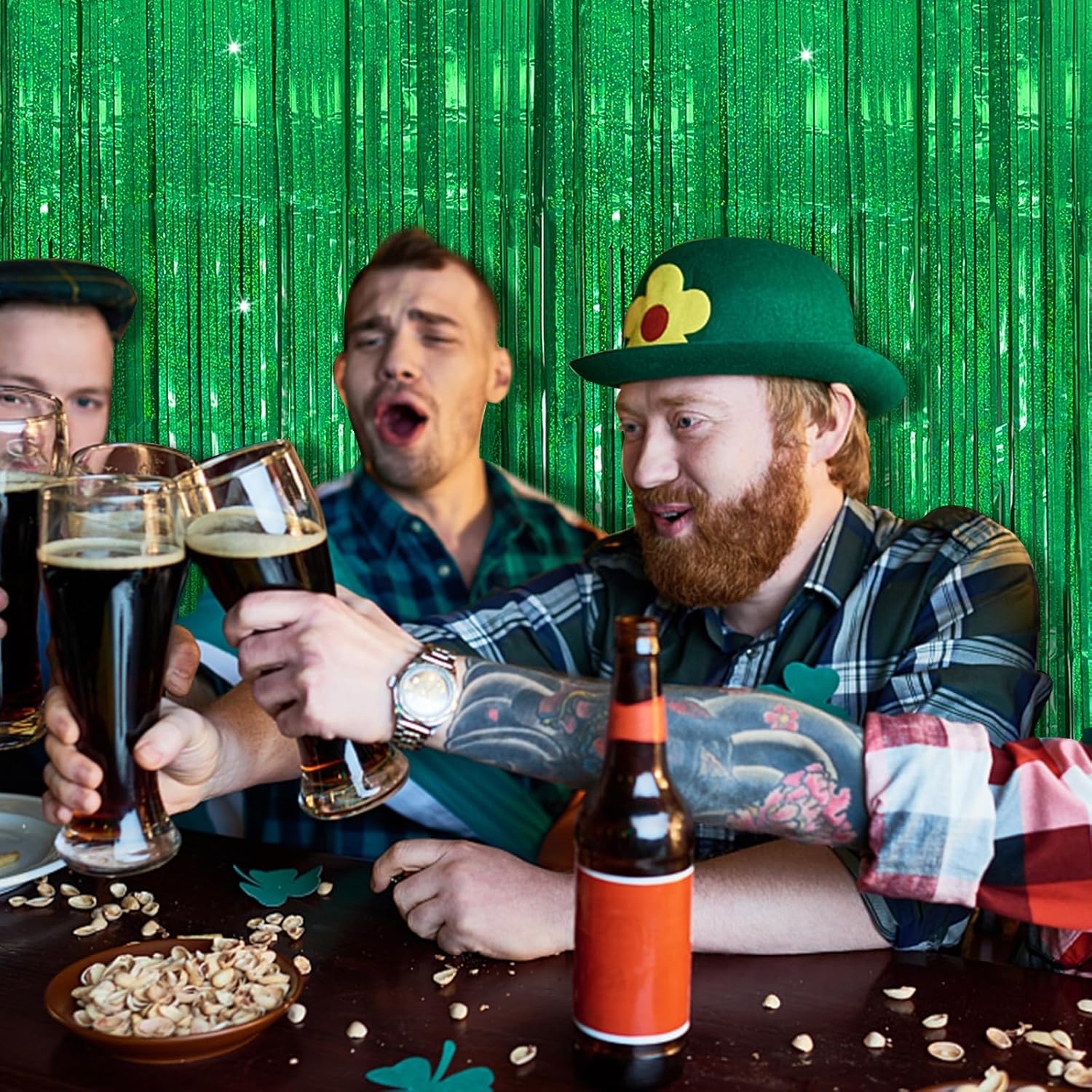 Tinsel Curtain Party Backdrop Green Birthday Decorations 2 Packs Glitter Foil Fringe Curtain Party Decor Streamers Photo Booth for Birthday Christmas Wedding Halloween Graduation Decorations