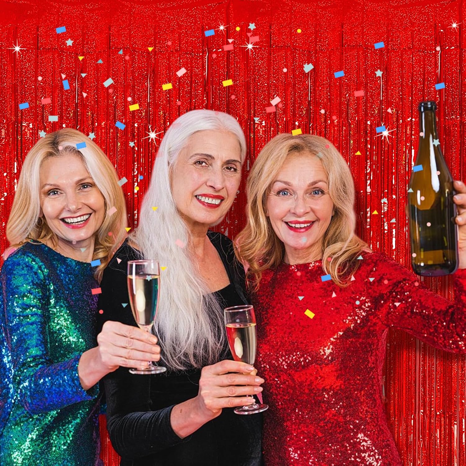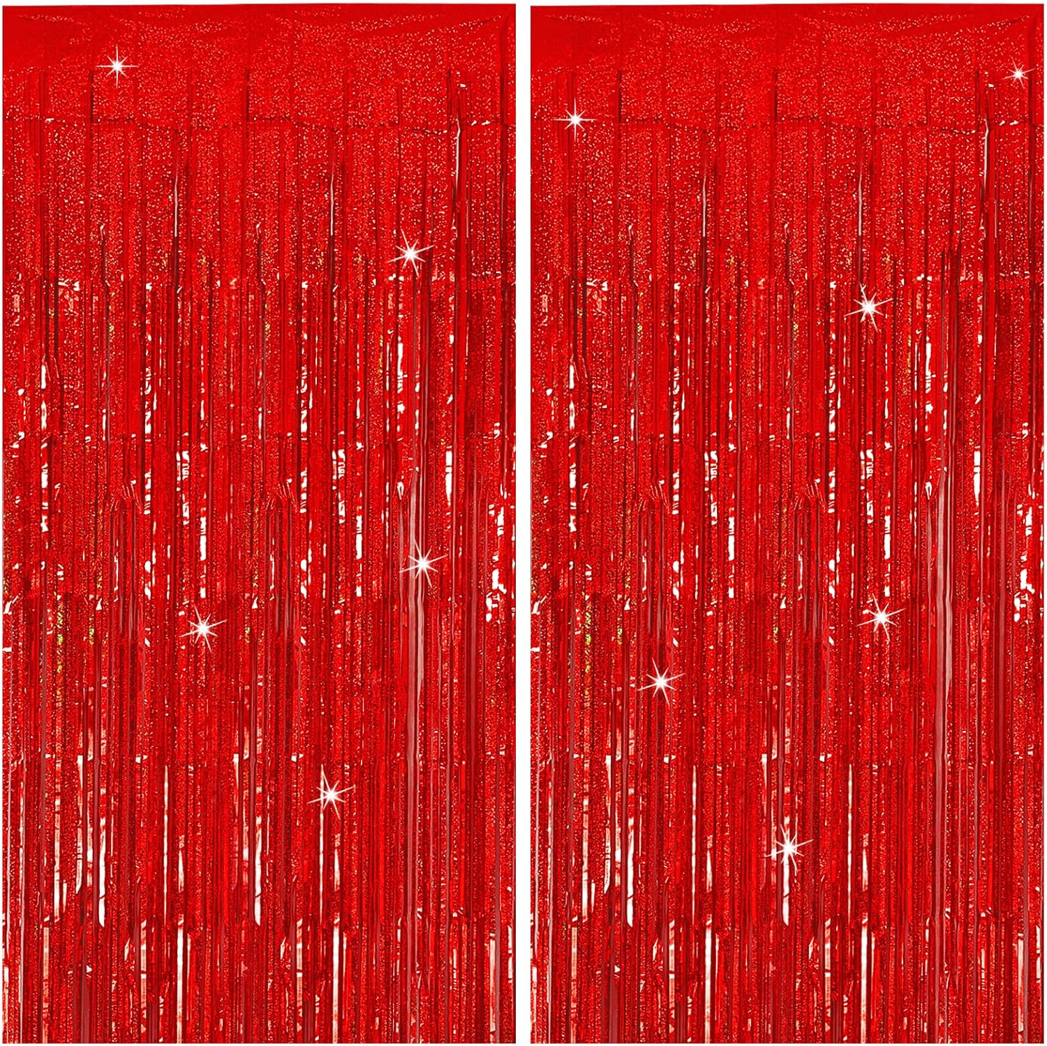 Tinsel Curtain Party Backdrop Red Birthday Decorations 2 Packs Glitter Foil Fringe Curtain Party Decor Streamers Photo Booth for Birthday Christmas Wedding Halloween Graduation Decorations