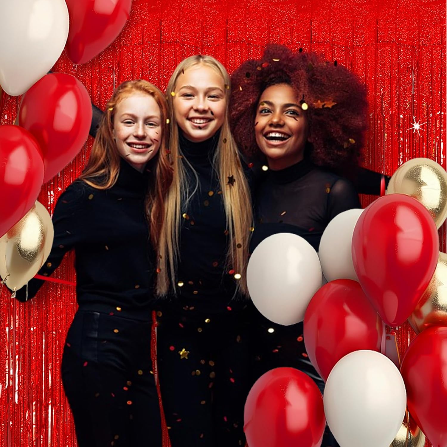 3 Pack Red Streamers Party Backdrop Christmas Decorations Foil Fringe Backdrop Curtains Carnival Casino Theme Birthday New Year Holiday Celebration Bachelorette Party Decorations Supplies