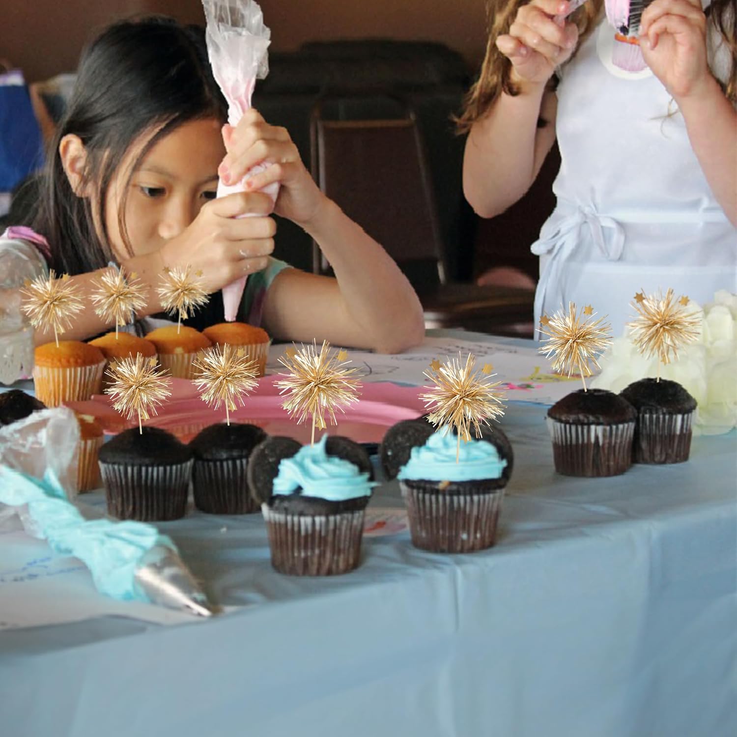 Gyufise 30Pcs Foil Firework Cupcake Toppers Happy Birthday Cake Toppers Sparkle Tinsel Flower Drink Stirrers Cocktail Food Fruit Toothpicks for Valentine's Day Party Supplies Gold