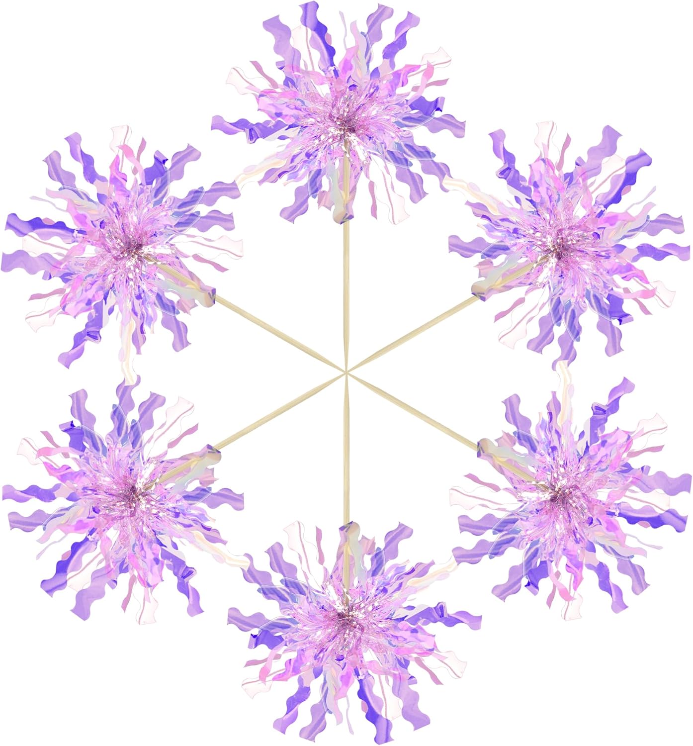 Gyufise 30Pcs Foil Firework Cupcake Toppers Happy Birthday Cake Toppers Tinsel Flower Drink Stirrers Cocktail Food Fruit Toothpicks for Valentine's Day Party Birthday Wedding Supplies Purple