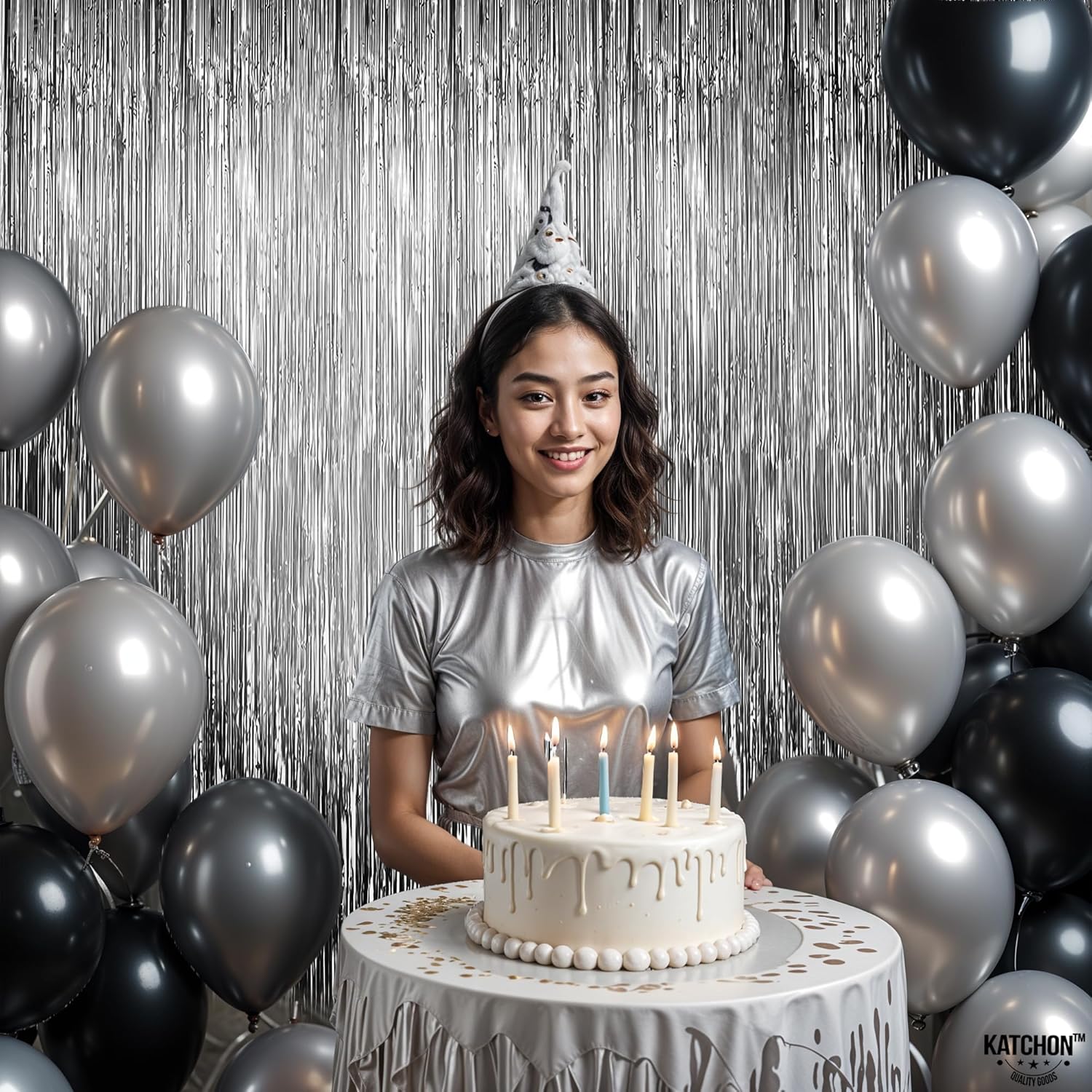 KatchOn, Metallic Silver Backdrop - Pack of 2 | Silver Streamers for Disco Party Decorations | Fringe Backdrop for Wedding, Anniversary, Birthday, New Year, Christmas, Bachelorette Party Decorations