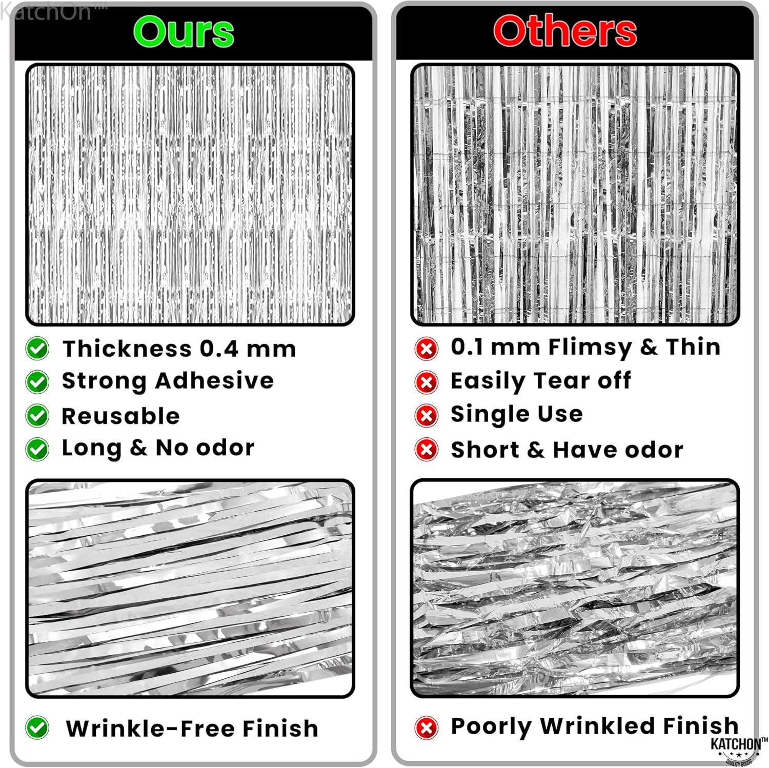 - STURDY | DURABLE | REUSABLE : Make your silver party curtain stand out as a silver tinsel backdrop. This silver party streamers will help to add a sparkle to your silver party decorations. Our silver streamer backdrop is made from grade 'A' foil quality material, re-usable, durable and won't easily strip down. You can use these silver streamers as disco backdrop, silver tinsel backdrop and disco decorations, silver fringe curtain with our silver party backdrop, silver backdrop curtain, silver tassel backdrop, disco themed party decorations for silver new years decorations, halloween streamers