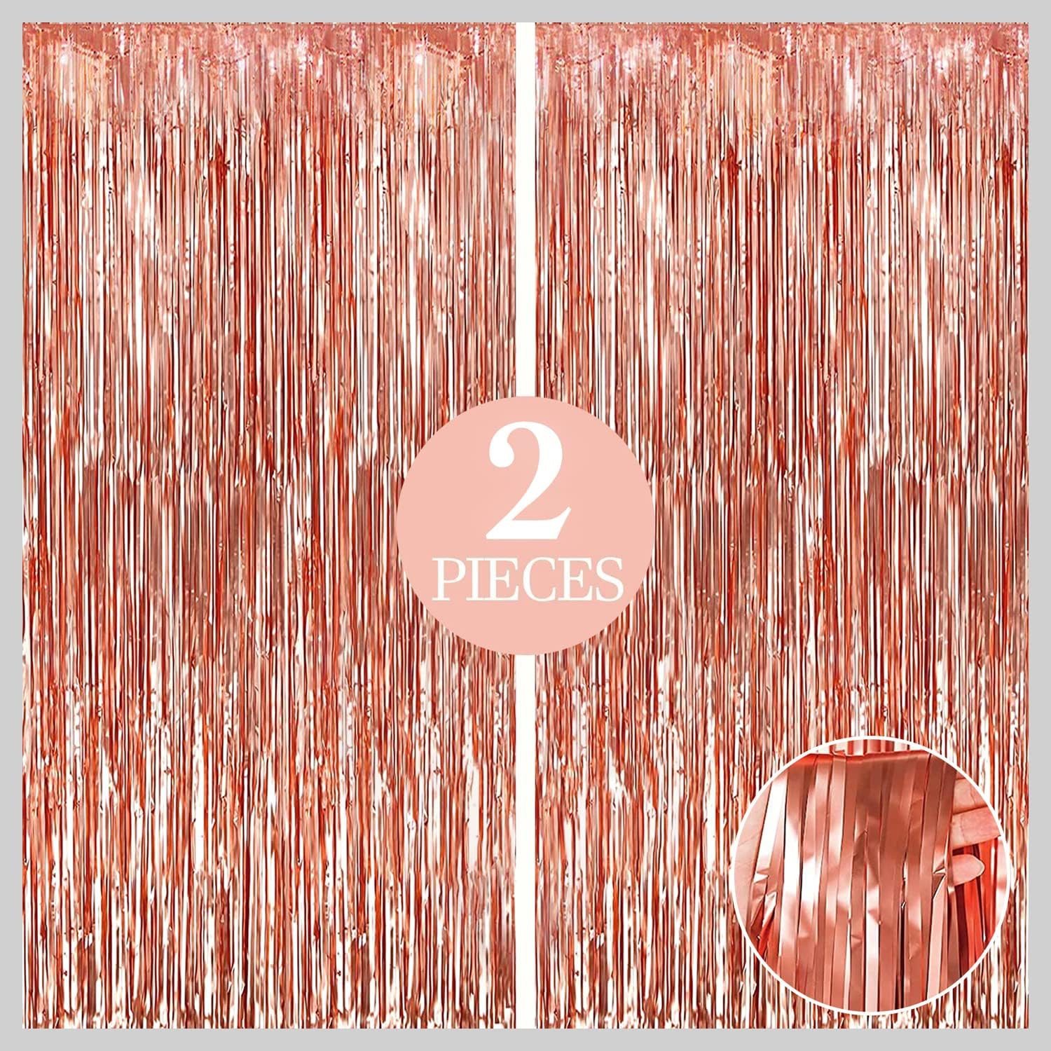 - EASY TO ASSEMBLE | BEAUTIFUL METALLIC STREAMERS - This Rose gold tinsel backdrop comes with adhesive strip at the back so it would be very easy to hang in your wall! Plus this beautiful pack of 2 Rose Gold Foil Fringe Curtain for Rose Gold Birthday Decorations for women could stay hanging for days! Also the cut of the tinsels is pretty wide, it’ll will not easy strip down! It will surely transform your home or office into a shining and glimmering streamers birthday decorations.