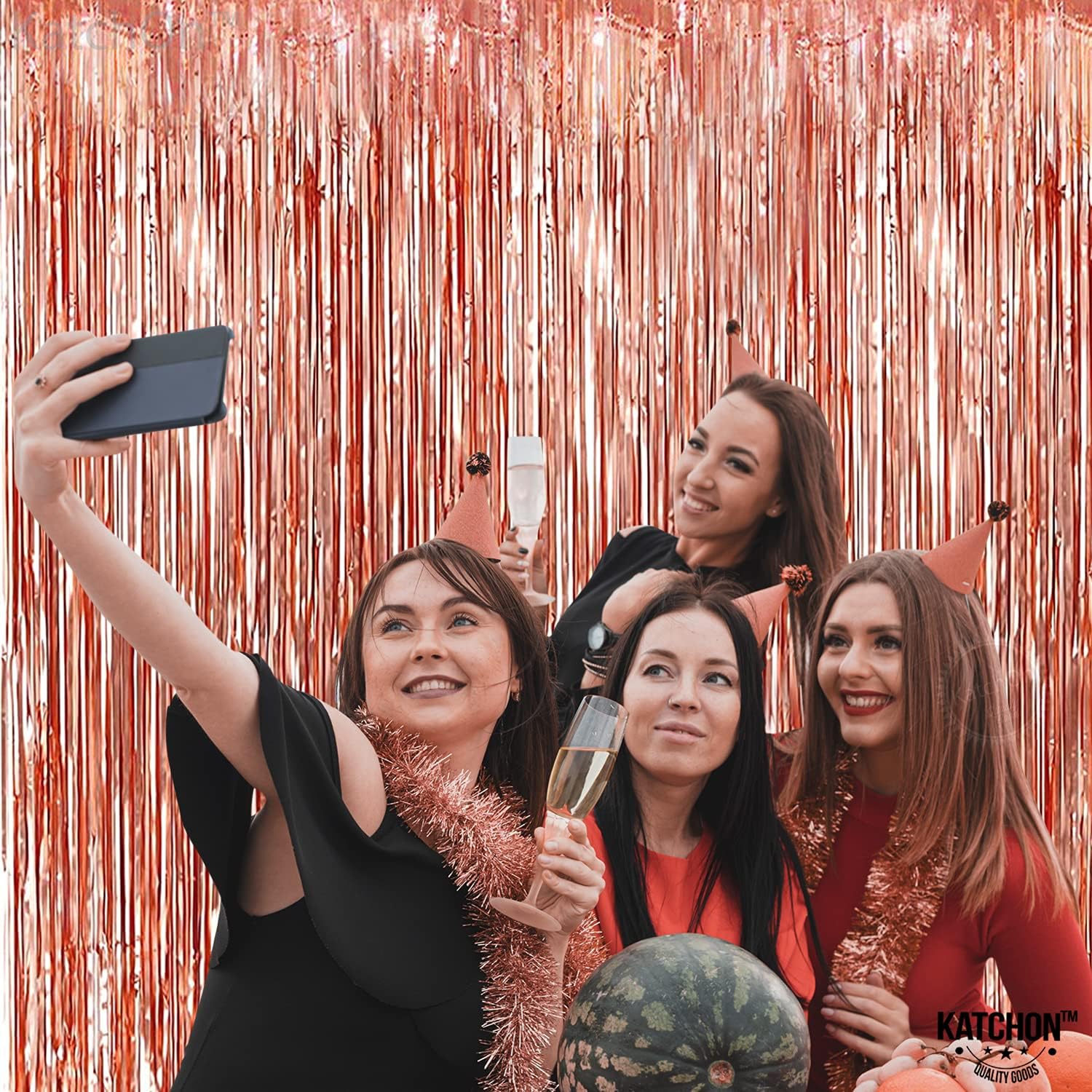 - STURDY AND DURABLE | BEAUTIFUL GLIMMERING ROSE GOLD BACKDROP CURTAINS - When it comes to decorating for a party, these rose gold streamer backdrop curtain should be number one on your list. This elegant and stunning rose gold fringe backdrop for party curtains decorations is ideal for the photo booth, dessert and sweets table and many more! Everybody will surely love taking selfies in front of this beautiful rose gold decorations as bachelorette party decorations.