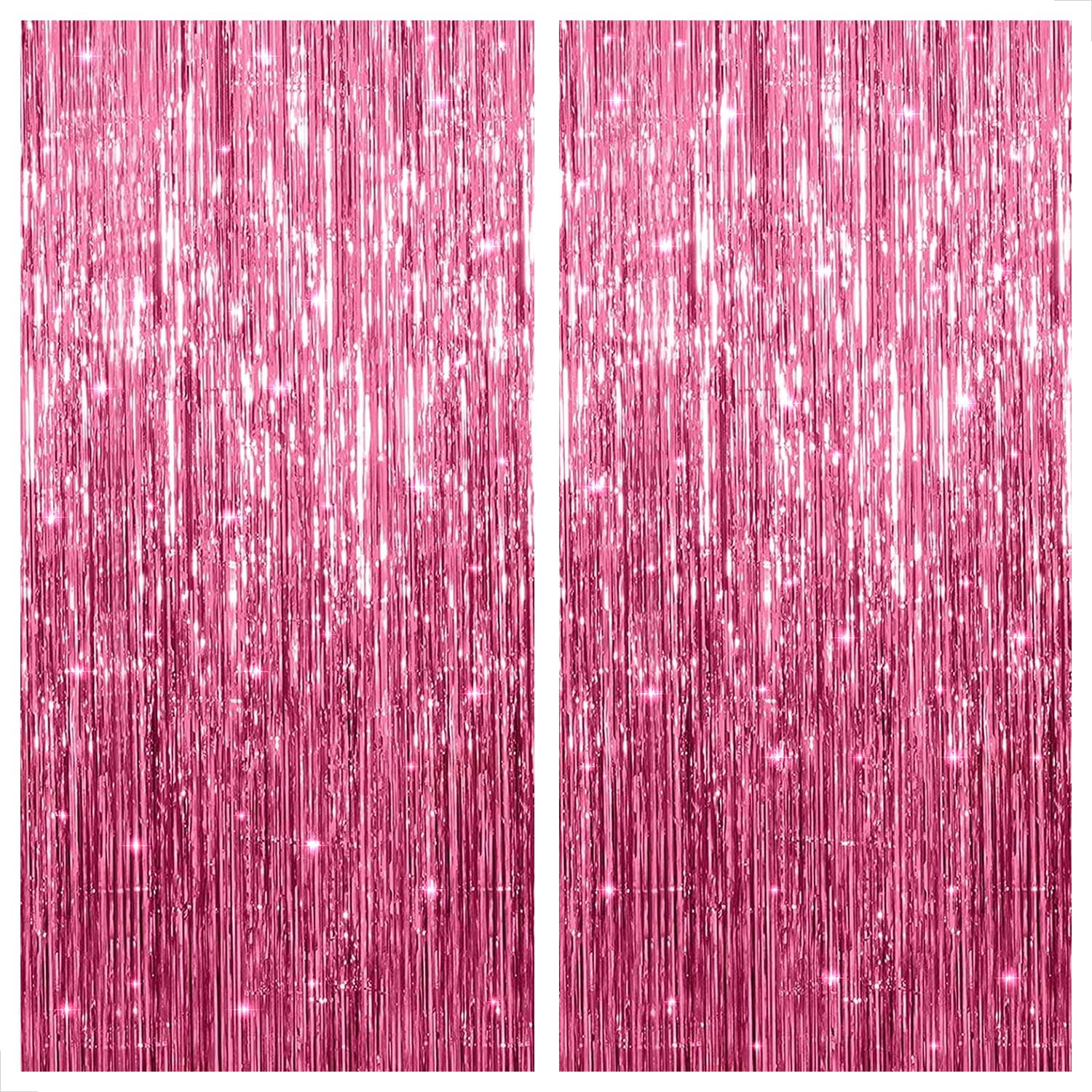- SIZE 3.2x6.5 FEET | PACK OF 2 PINK DOOR STREAMERS : Thinking about stunning party pink backdrop? Make elegant pink princess backdrop for your daughter's birthday with foil pink streamer curtain. Pink back drop size of 3.2x6.5ft comes in pack of 2 pink streamers. This pink party backdrop, pink foil fringe curtain will create beautiful pink tinsel backdrop for pink birthday decorations, flamingo party decorations, pink party decorations, breast cancer awareness decorations.