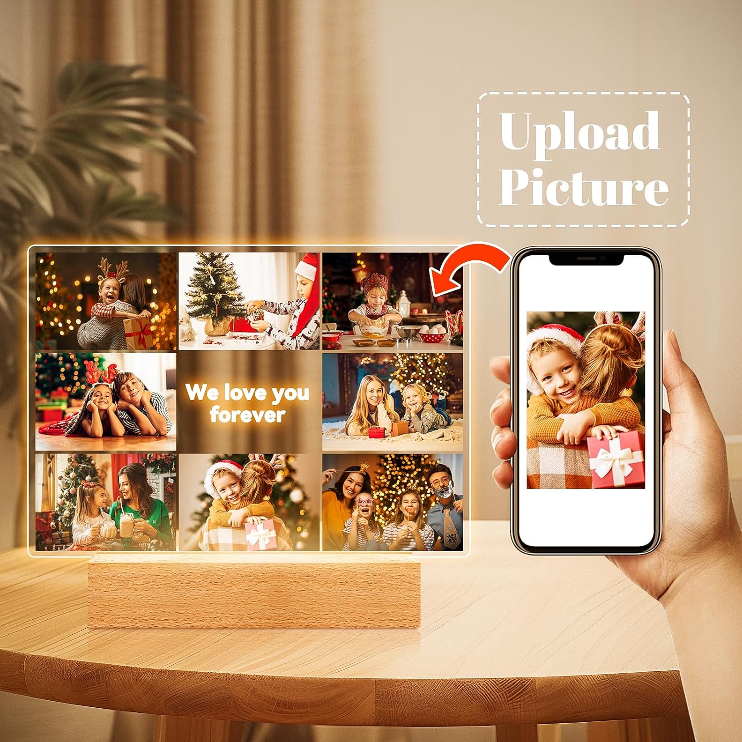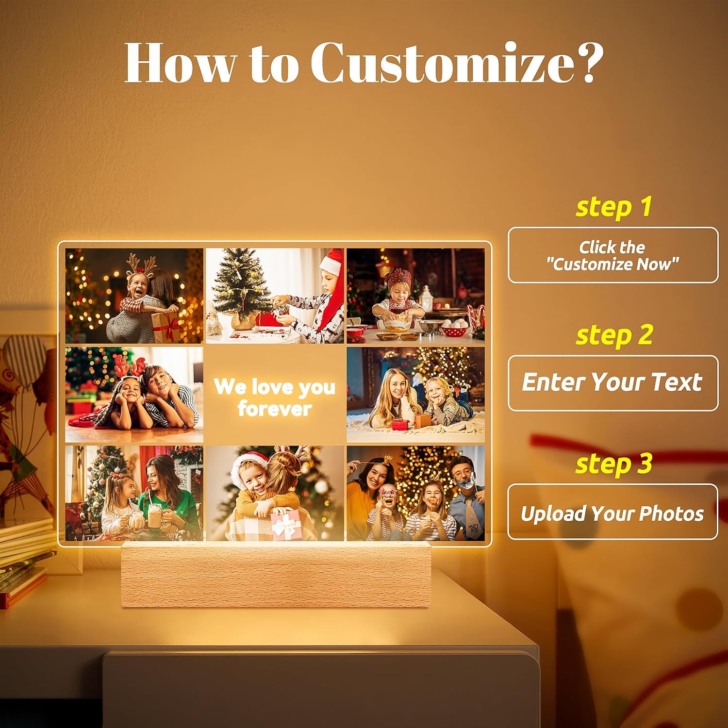 Custom Picture Frames with Photos, Personalized Photo Picture Frame, Customized Photo Frames with Night Light, Personalized Photo Gifts for Women, Men, Mom, Dad, Kids, Baby, Family, Friends