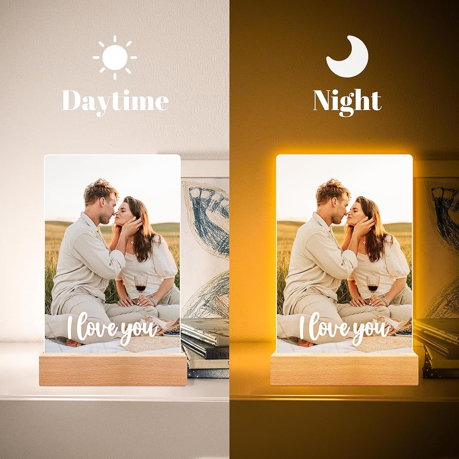 Personalized Picture Frame with Photo, Customized Photo Frame with Night Light, Custom Couple Picture Frames, Personalized Anniversary Birthday Gifts for Women Men Girlfriend Boyfriend Her Him