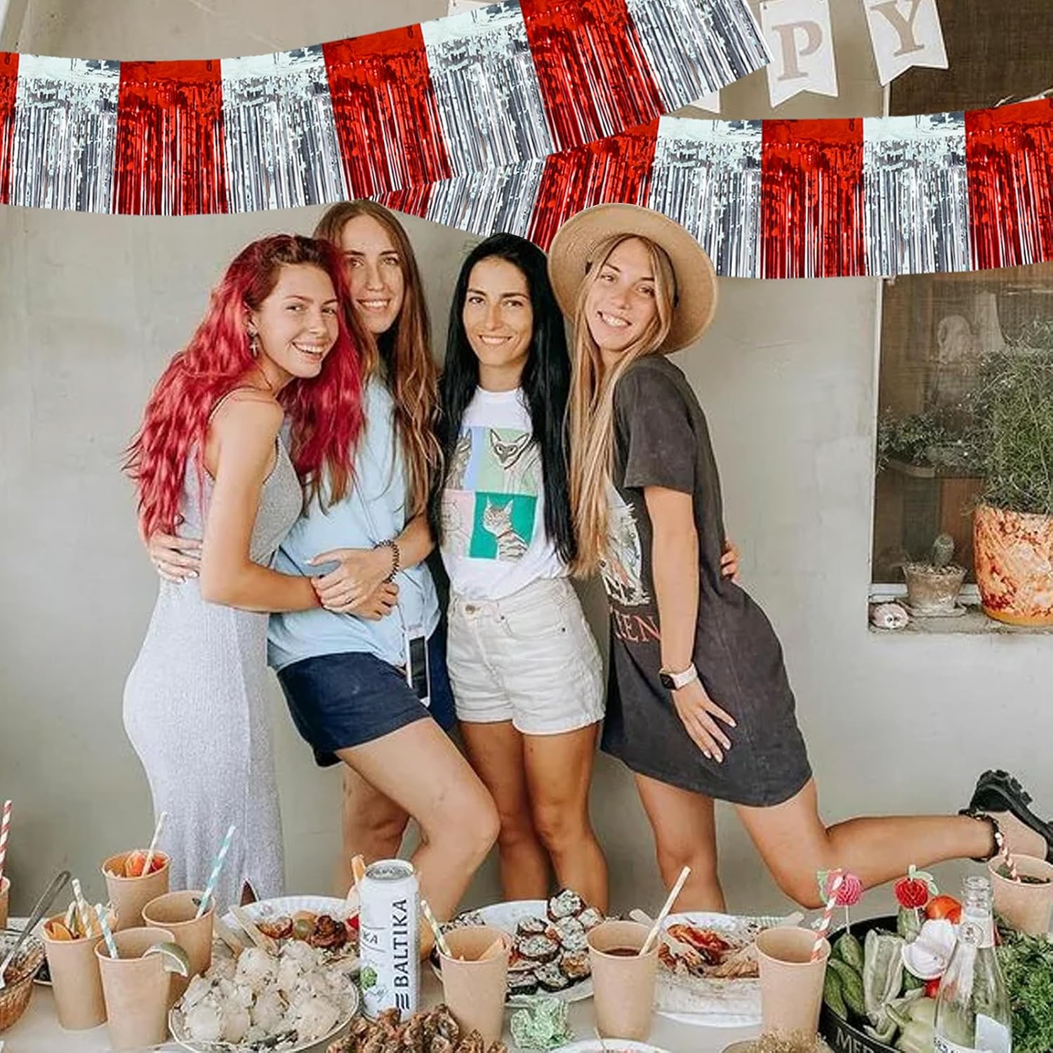 BEISHIDA 3 Packs Red Silver Metallic Foil Fringe Garland Red Silver Wall Hanging Tinsel Fringe Banners for Halloween Floats Bridal Shower Wedding Birthday Graduation Holiday Party Decoration(30 Ft)