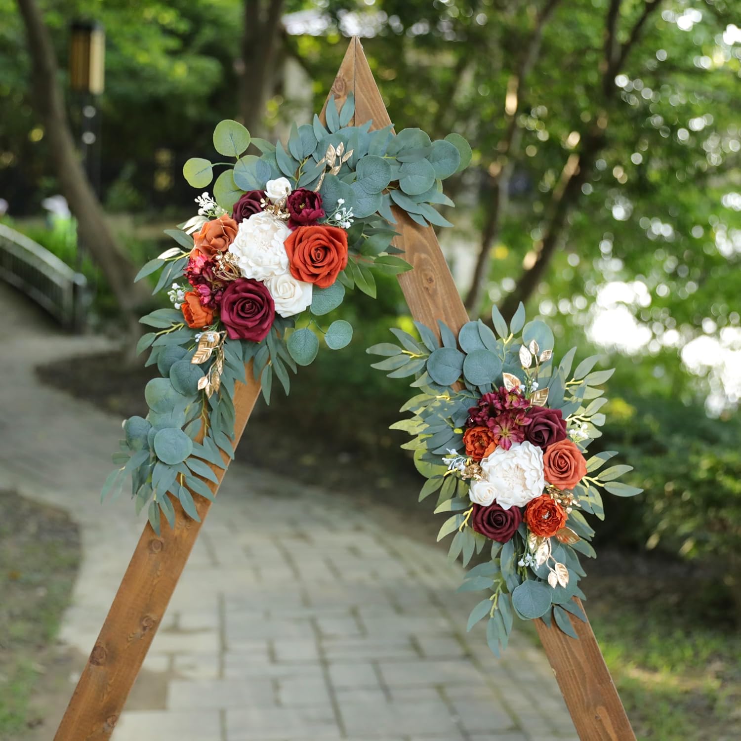 Artificial Burnt Orange Wedding Arch Flowers Swags (Set of 2) for Welcome Signs Floral and Wedding Church Decoration Ceremony, Anniversary, etc, Burgundy Roses Flowers