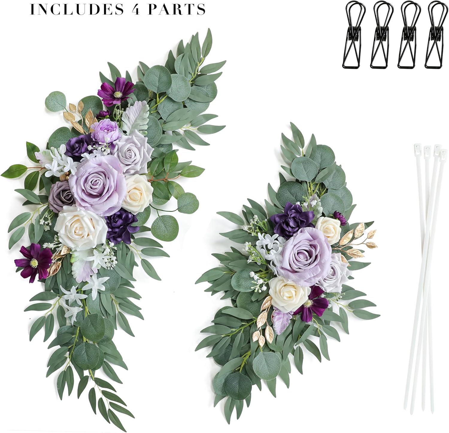 Artificial Lilac Wedding Arch Flowers Swags Set of 2 for Wedding Welcome Signs Floral and Reception Ceremony Decorations, Purple Wedding Flowers
