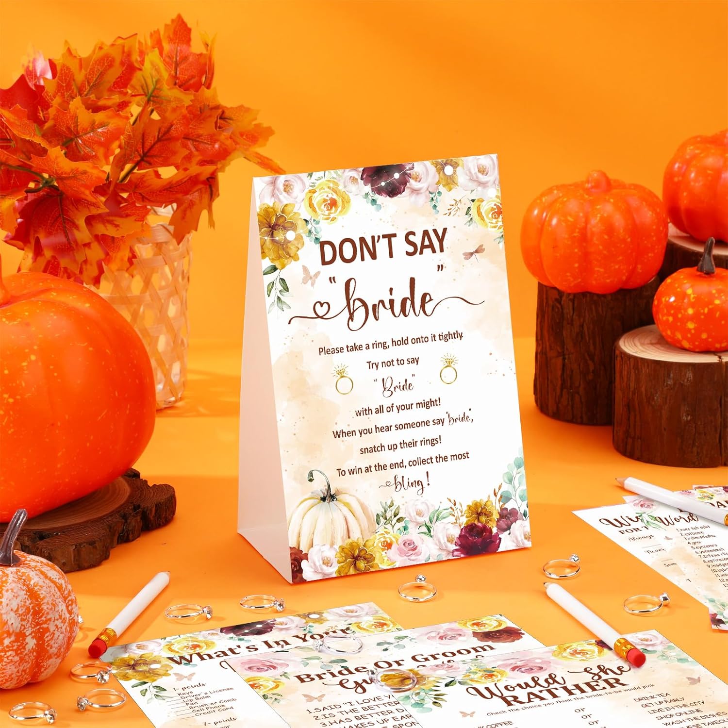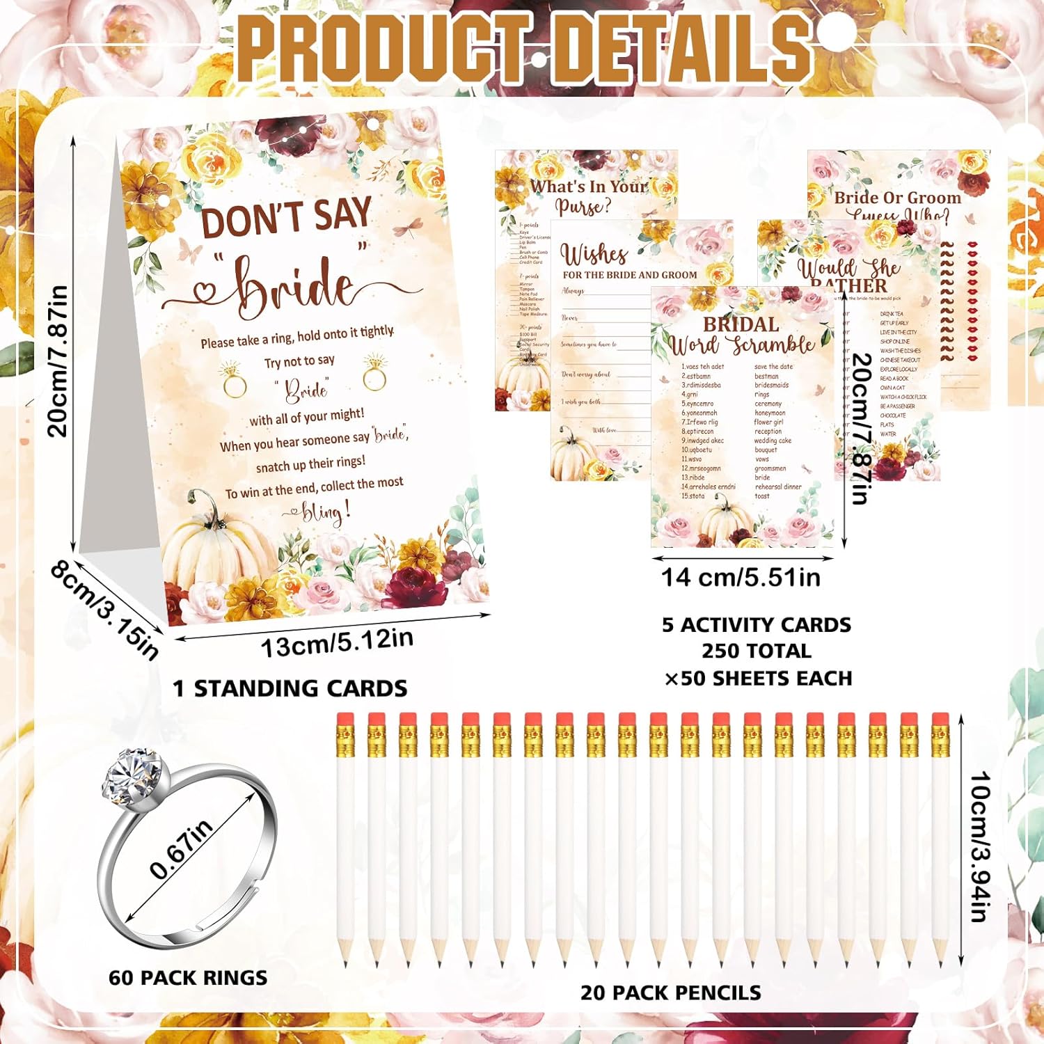 - Funny Bridal Shower Games: you will be provided with 250 pieces of fall in love themed wedding games cards, 1 piece of wedding sign, 60 pieces of rings and 20 pieces of pencils, sufficient quantities can entertain your families and guests in bridal shower