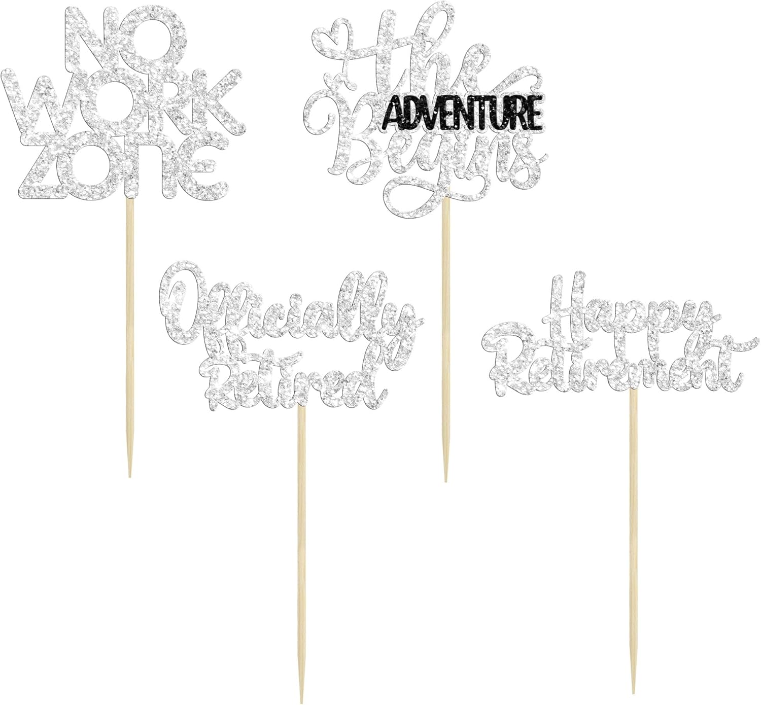 24Pcs Happy Retirement Cupcake Toppers Officially Retired Cake Toppers No Work Zone Adventure Begins Cupcake Picks Retirement Theme Farewell Birthday Party Decorations Supplies Silver