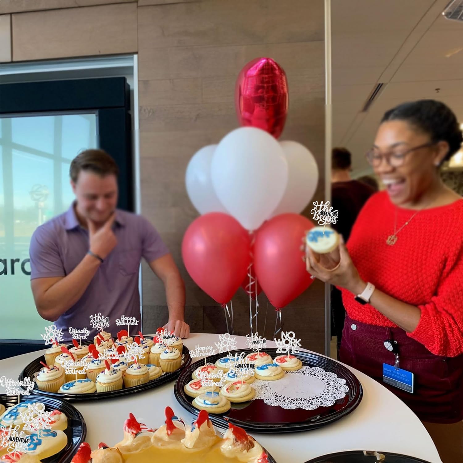 - 【NO Required】: 24Pcs Happy Retirement Cupcake Toppers can put in the cake directly! These Happy Retirement Cupcake Toppers saves your time and super easy to use. You can easily dress up your birthday theme cakes, yes! but don't stop there, put them into desserts, cookies, fruit pieces, appetizers, muffins and so much more!