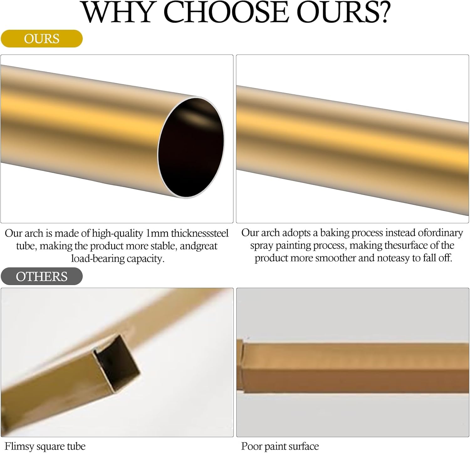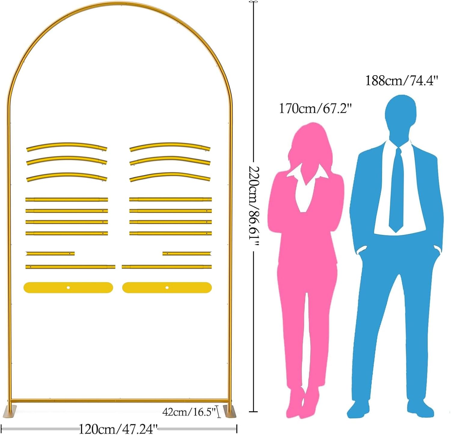 - 【Applicable to Multiple Scenarios】The Gold Balloon Arch Frame can be decorated with arch backdrop covers, balloons, flowers, plants, lights, etc. It is perfect for various events, like weddings, baby showers, bridal showers, birthday parties, garden parties, photography sessions, photo booths, commercial events, themed parties, engagement banquets, Valentine's Day, Thanksgiving, Christmas, and other special occasions. Accompanying every important moment in your life.