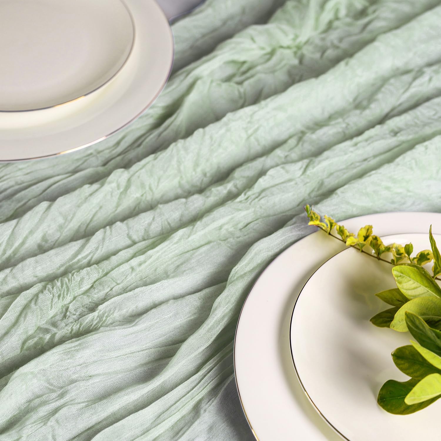 Hahuho Sage Green Cheesecloth Table Runner 10ft, Gauze Boho Rustic Table Runners for Wedding Birthday Party Baby Shower Decorations(6 Pack , 35x120 Inches)