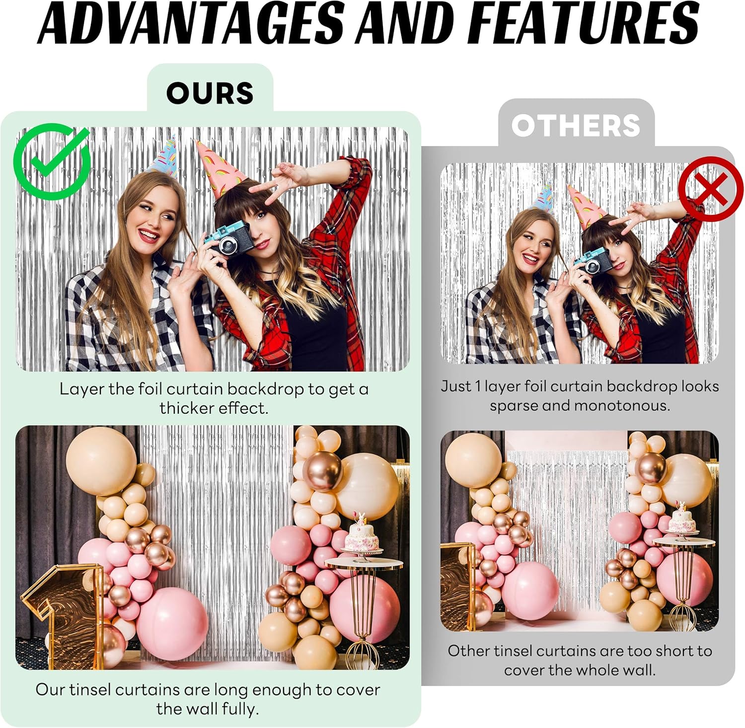 - Material:the foil curtain backdrop is made of tinsel with shiny surface