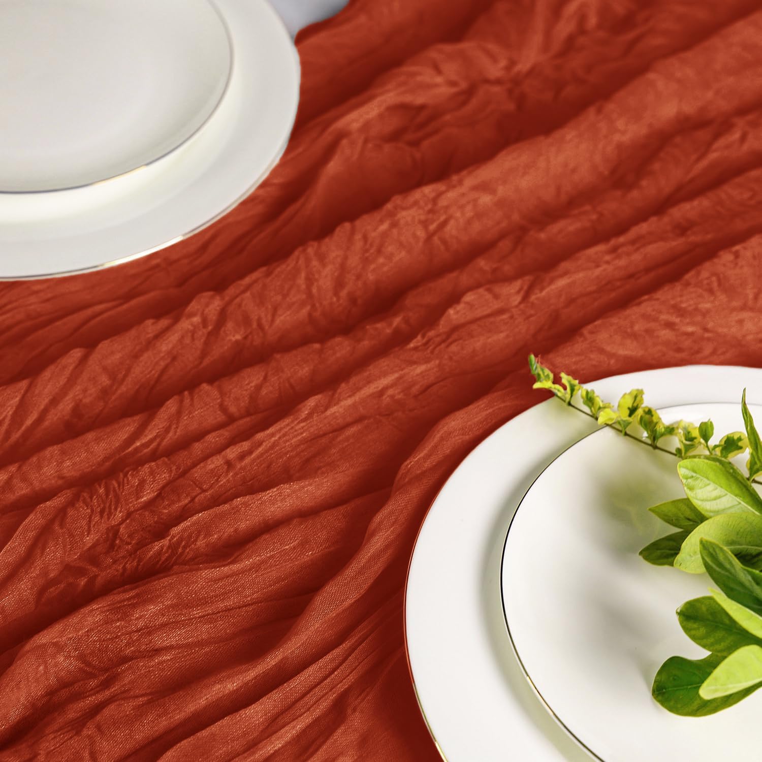 Hahuho Terracotta Cheesecloth Table Runner 10ft, Gauze Boho Rustic Table Runners for Wedding Birthday Party Baby Shower Decorations(1 Pack , 35x120 Inches)