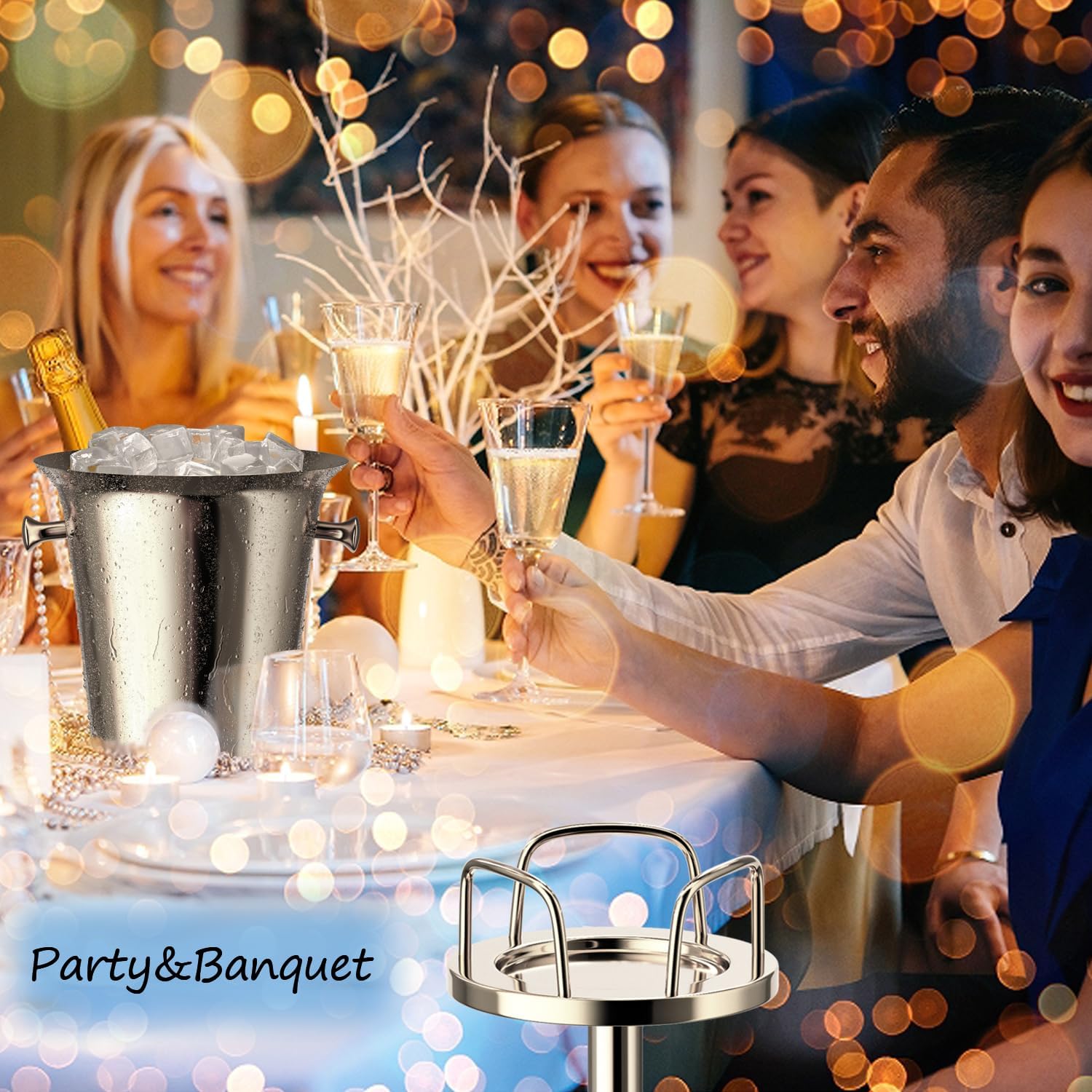 Ice Bucket with Stand Standing Champagne bucket for Party Stainless Steel Wine Bucket Wine Cooler with Stand 5L Wine Chiller for Bar Ktv Weding (silver)
