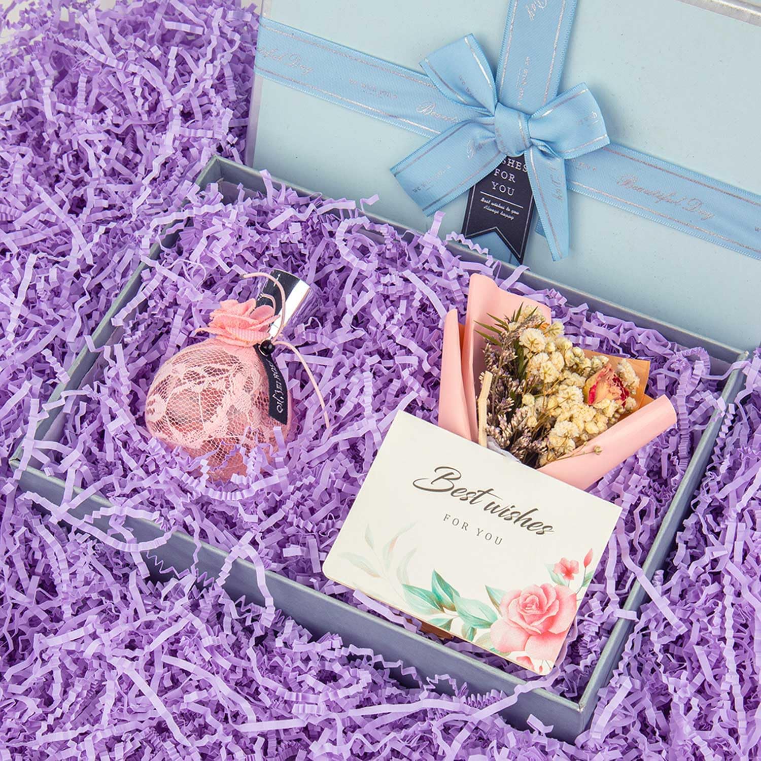 - Customize by yourself: Fluff the crinkle cut paper shred filler when you pull it out of the bag, so you can create the volume you desire and stretch the gift box basket filler.