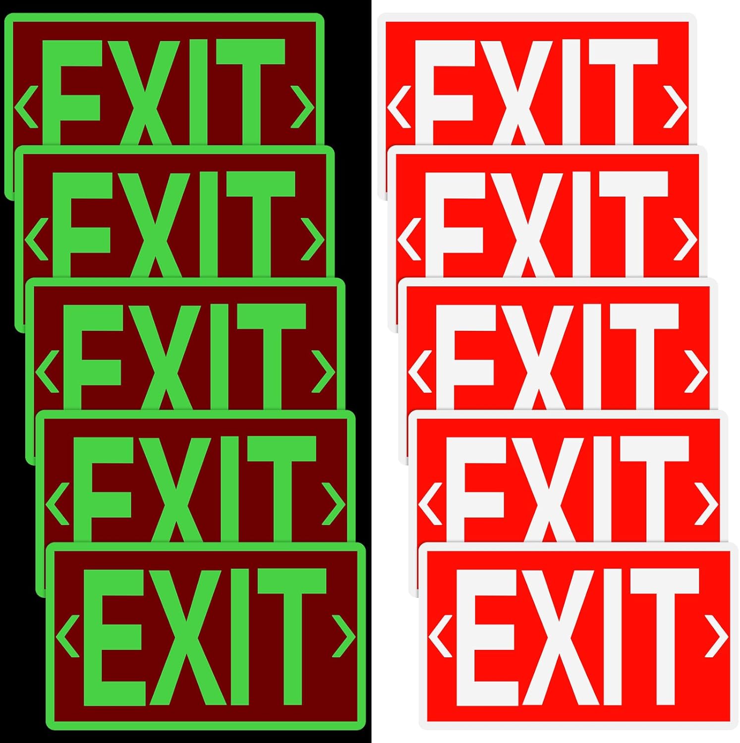 - Quality Emergency Glow Stickers: our glow in the dark exit signs ensures quality and safety; They automatically charge in light and retain a long lasting afterglow in the dark; The quality construction ensures a sturdy, reliable exit sign that will guide everyone to the ideal exit route in emergencies