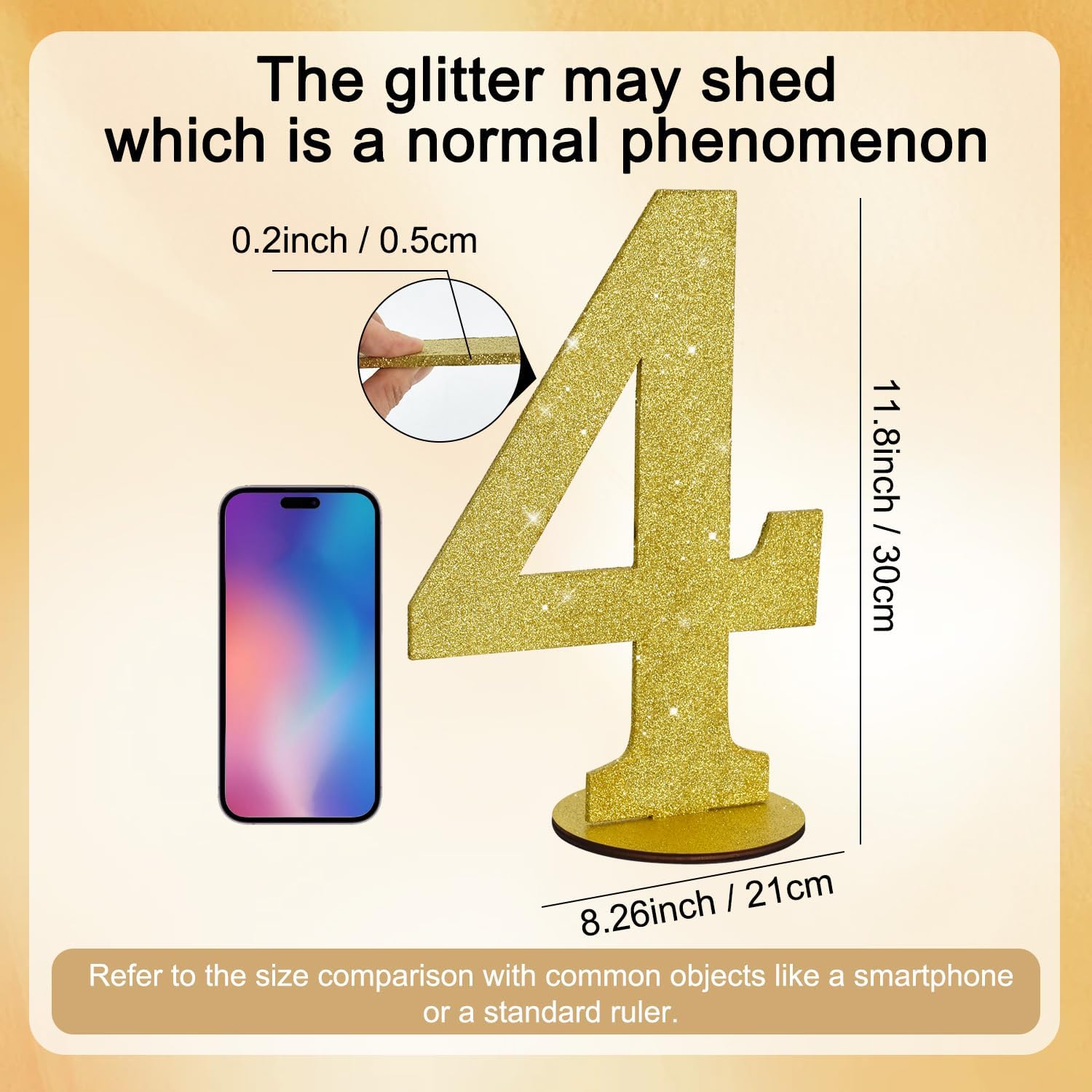TONIFUL 11.8 Inch Gold Glitter Numbers Table Centerpieces 0-9 Birthday Party Decorations,Shining Gold Digital 4 for Birthday Party,Wedding,Bridal Shower,Engagement,Photo Shoot,Anniversary