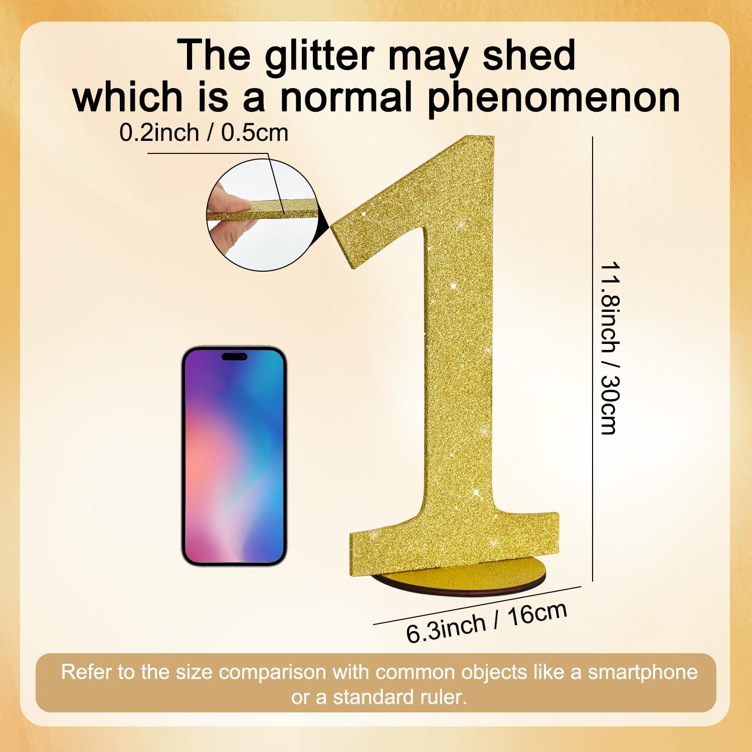 - Item Information: 1*1 gold glitter number ornament. Size: 30*20*0.3 CM (11.8 * 7.9 * 0.12 Inch)