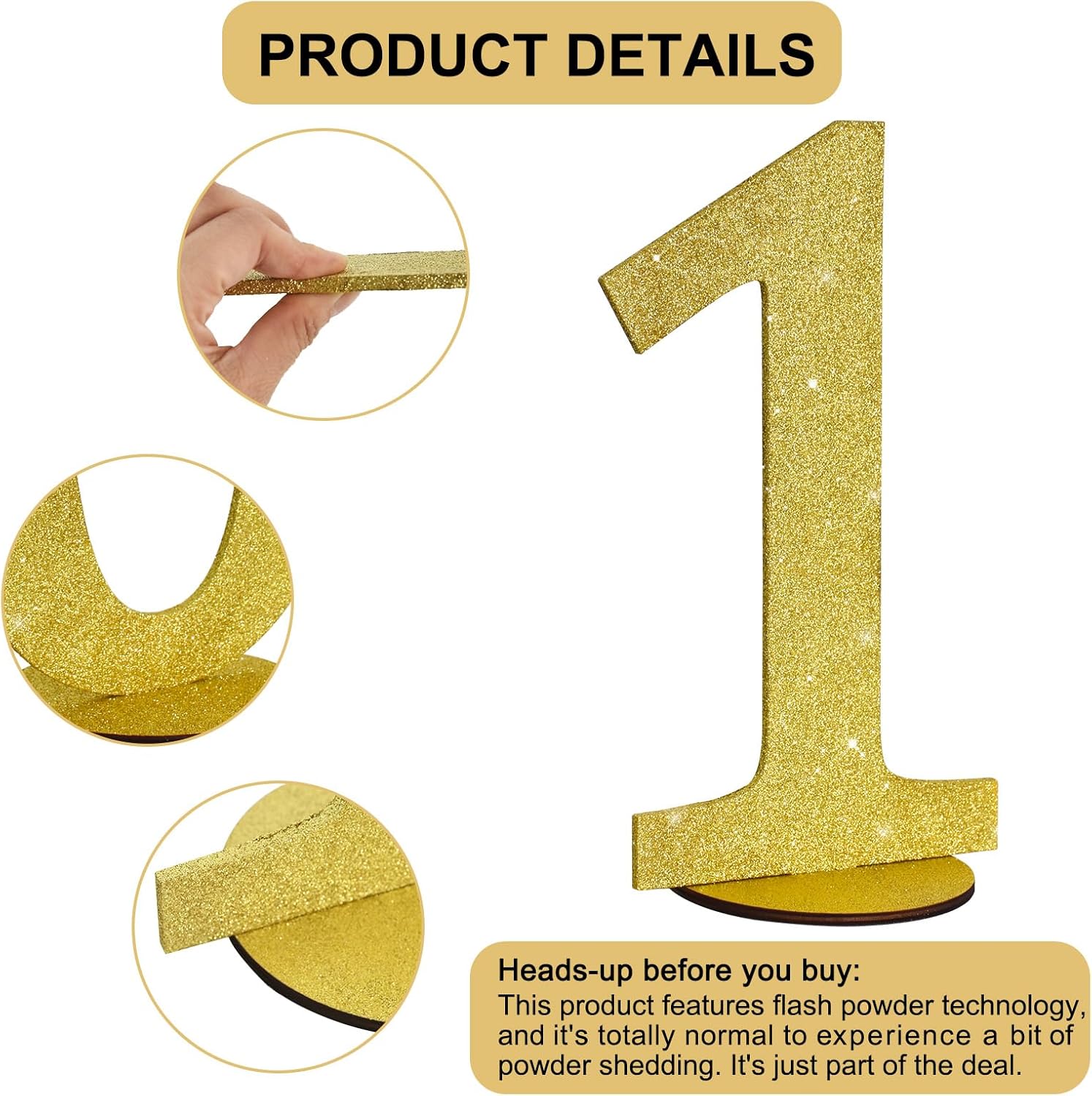 - Easy to use:A simple assembly process. Just gently place the numbers on the base, and instantly you'll have a gold glitter number centerpiece