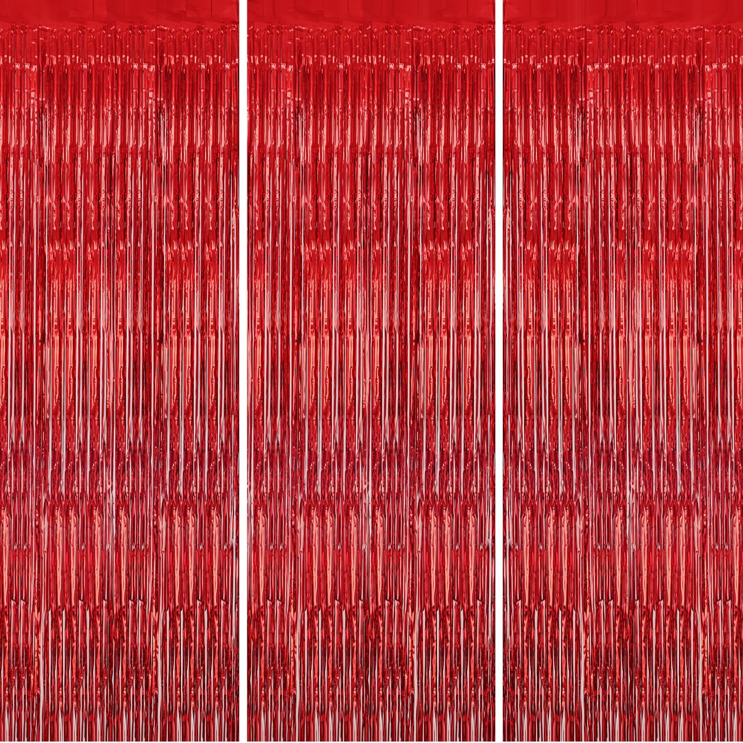 3 Pack Foil Fringe Backdrop - Red Shiny Tinsel Curtains for Party Decoration/Photo Booth Props - 3.3x8.2 FT Metallic Foil Backdrop for Birthday, Wedding, Graduation, Christmas.