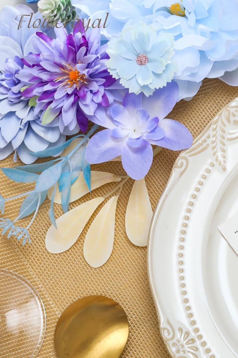 - ♔EASY TO DIY & CARE-Floweroyal fake flower is a box of pre-selected flowers by color, size and type. If you don't know how to make flower arrangements, we have picked out all the right kind of flowers for you to create. Our flexible plastic flower stems have built-in iron wires. It's very easy to stick in flower mud to arrangements or bend for DIY. Do not have to water and no dead leaves. Easy to clean and remove the dust. Not easy to fade. Easy to store for a long time and use repeatedly.