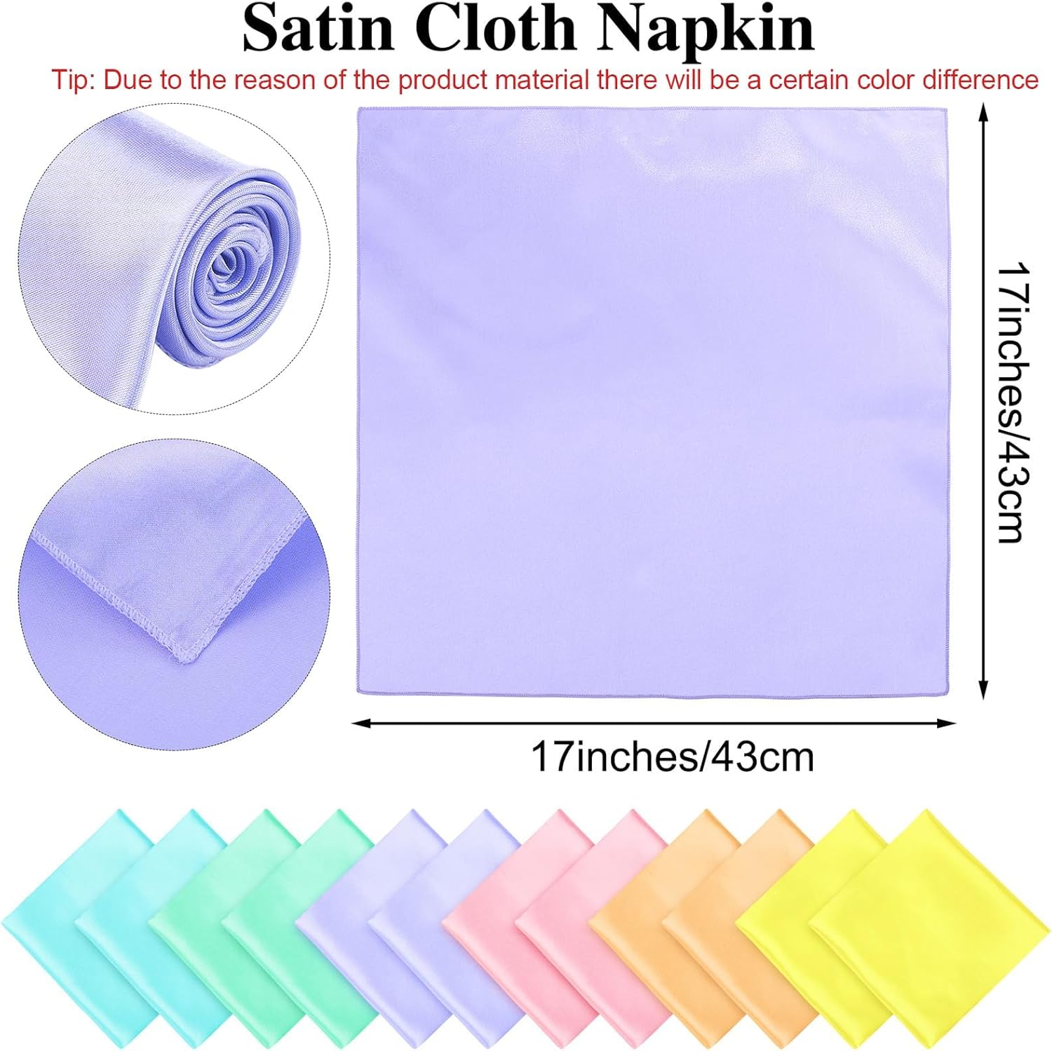 Aneco 12 Pieces Satin Napkins Soft Dinner Napkins Multicolor Square Weddings Table Napkins 17 x 17 Inches for Restaurant Weddings Party Dinner Decoration (Pastel Rainbow)