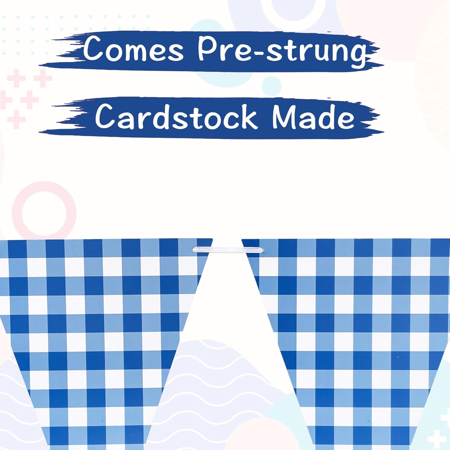 - Package includes 2pcs checkered pennant banner in classic blue and white gingham pattern, matching well with the picnic theme, pre-strung and distance adjustable that you can space them easily to the perfect site you like.