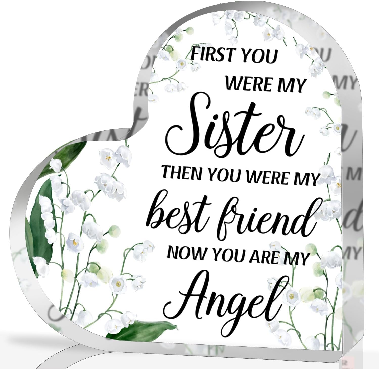 Sympathy Gifts for Loss of Sister, Memorial Gifts for Friends Female Women, In Memory of Sister Acrylic Heart Plaque, Funeral Remembrance Decor Ornament Sign, Bereavement Condolences Grief Gifts