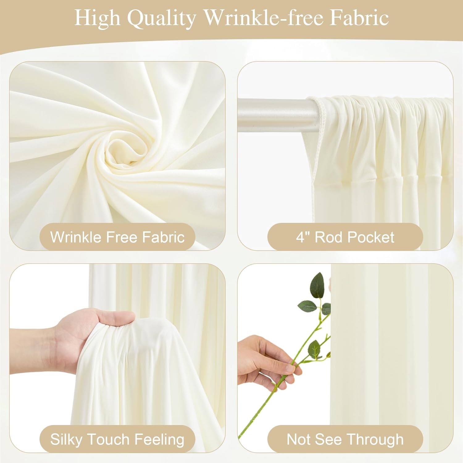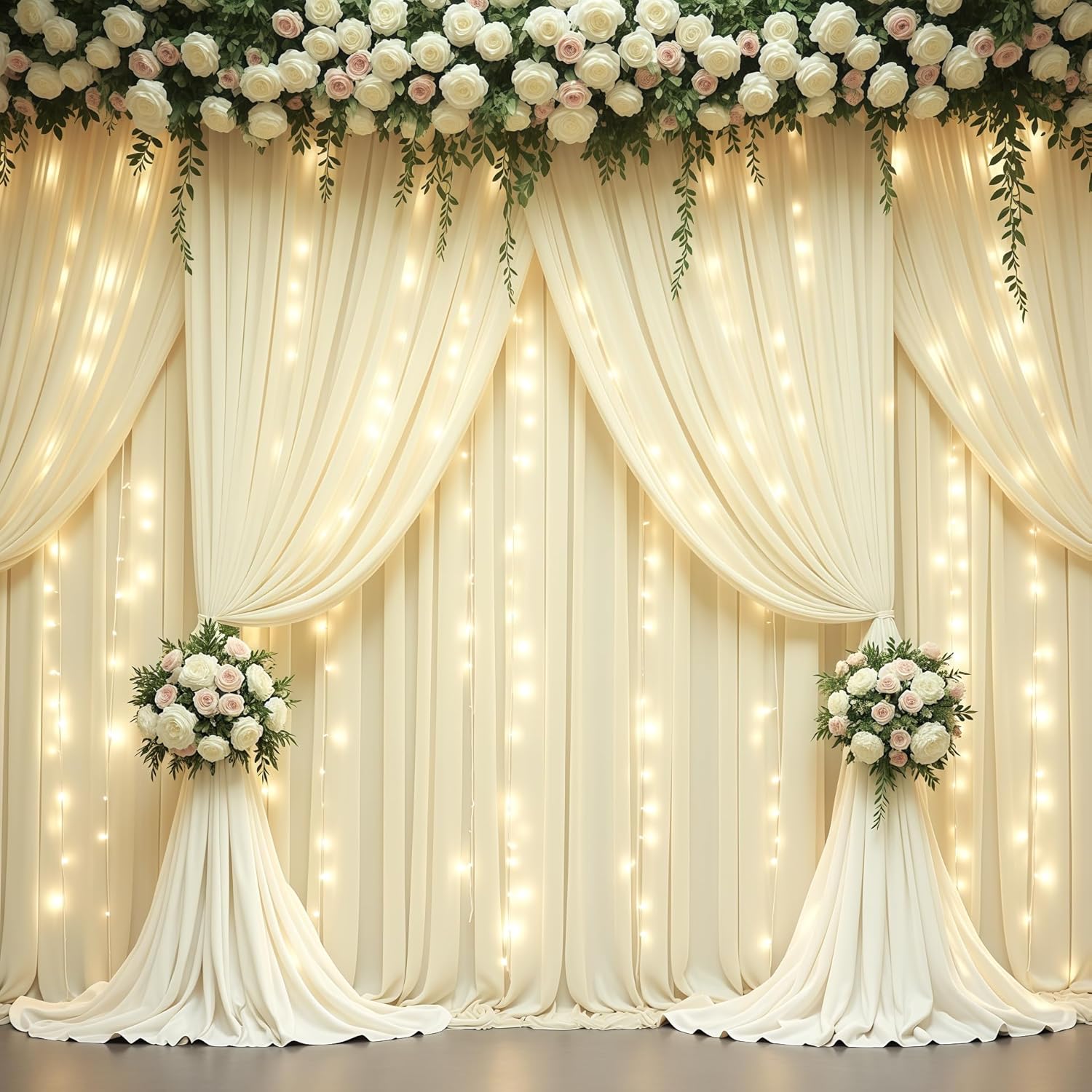 - 【Wedding Backdrop Material】- Our beige curtain lights for backdrop is crafted from premium 100% high-quality polyester fabric which offers a silky smooth texture, and an irresistibly soft touch akin to milk. You can dress it up with a gorgeous background or use lights to create a romantic atmosphere.