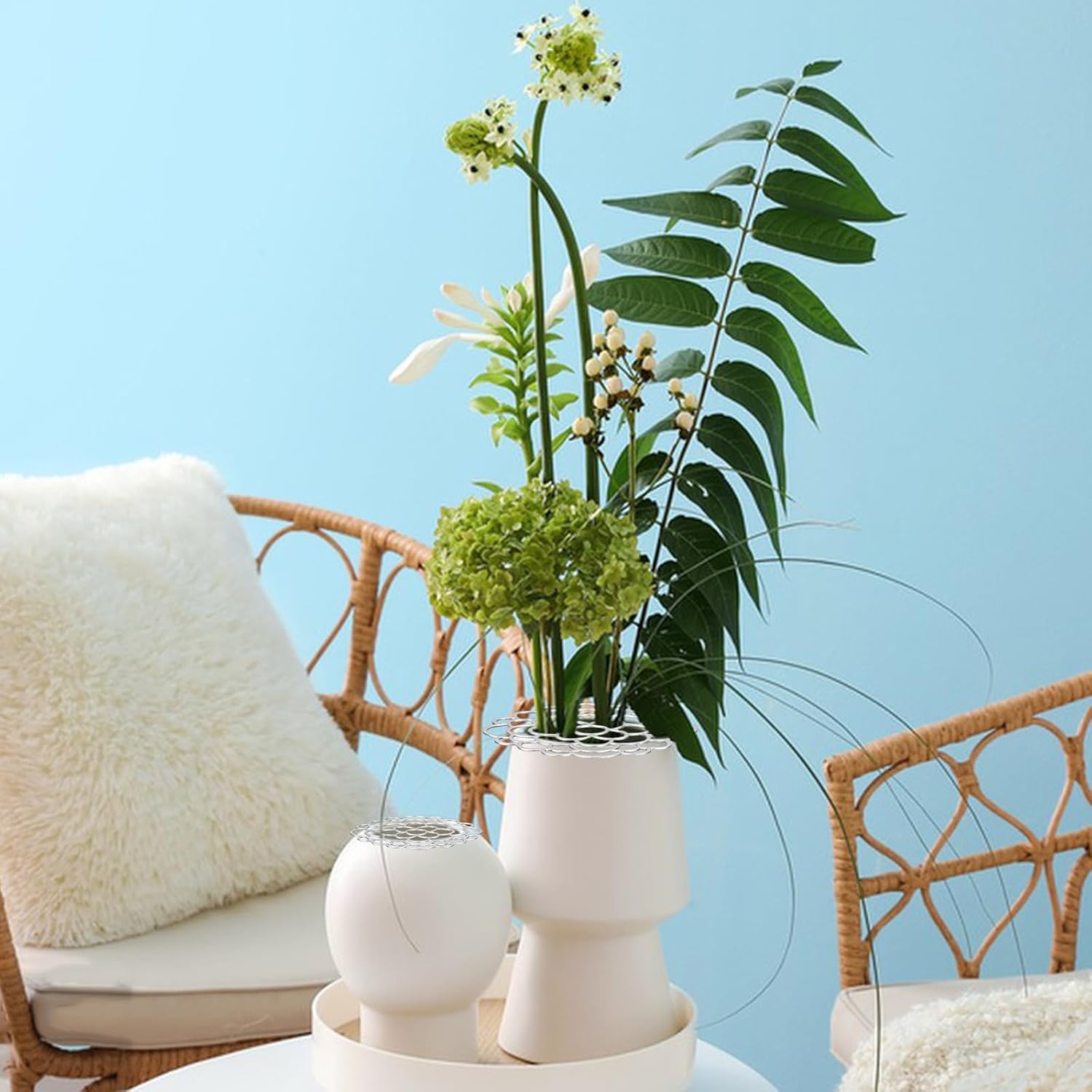 - Easy to Use: To help you arrange the flowers in a more orderly manner, we have equipped this 3 flower frogs lid with 8 medium and 8 small fixing clips. Using 2 to 4 fixing clips can prevent the flower frog lid from twisting and moving, giving you a more secure and comfortable use experience.
