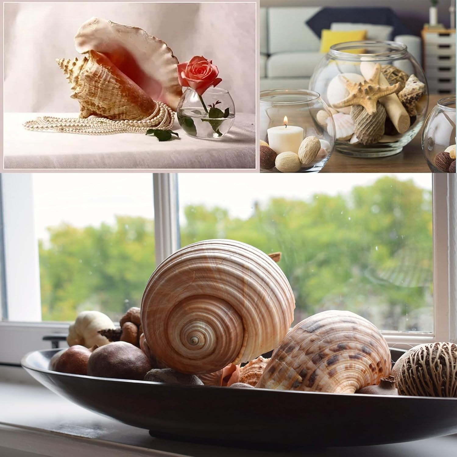 JQAQJU Sea Shells for Decorating 15PCS Large Seashells Starfish Conch for Beach Party,Vase Fillers, Table Scatters, Home Decor, DIY Crafts, Bathroom, Fish Tank Decorations