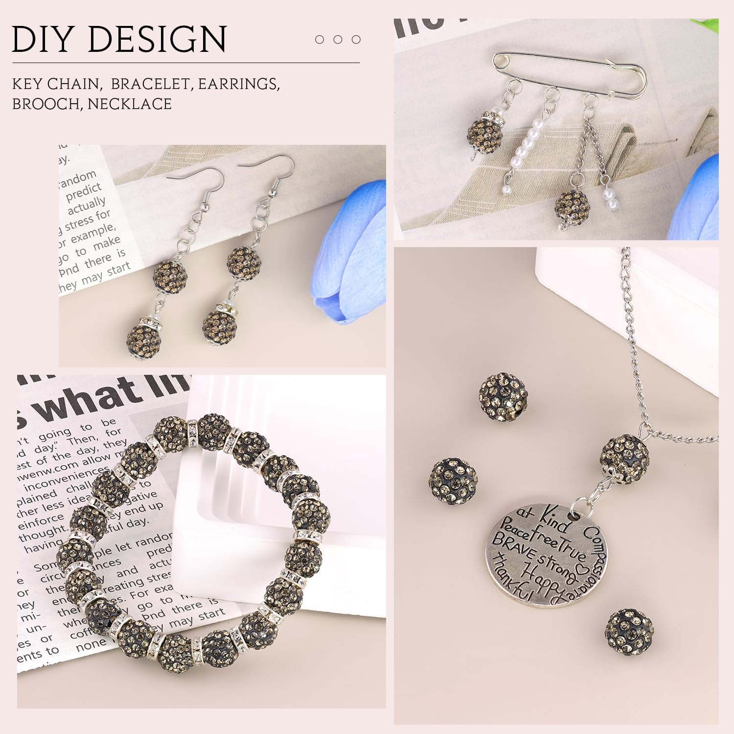 100pcs 10mm Rhinestone Beads for Jewelry Making, Gray Shiny Round Shamballa Disco Ball Beads Bulk, Sparkle Crystal Clay Christmas for Bracelet Baseball Necklace Earring Crafting and DIY