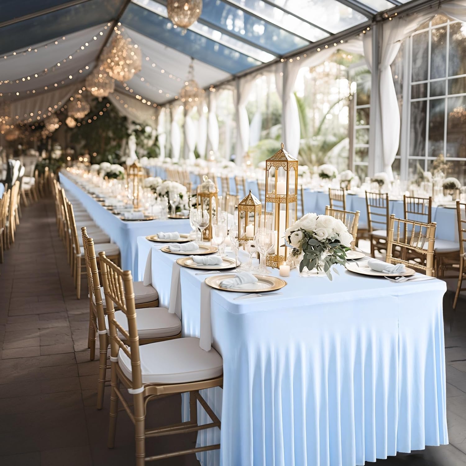 2 Pack Baby Blue Spandex Table Clothes for 6 Foot Rectangle Tables, 6FT Wrinkle Free Fitted Tablecloths Ruffles Design Table Cover for Party, Banquet, Wedding and Events