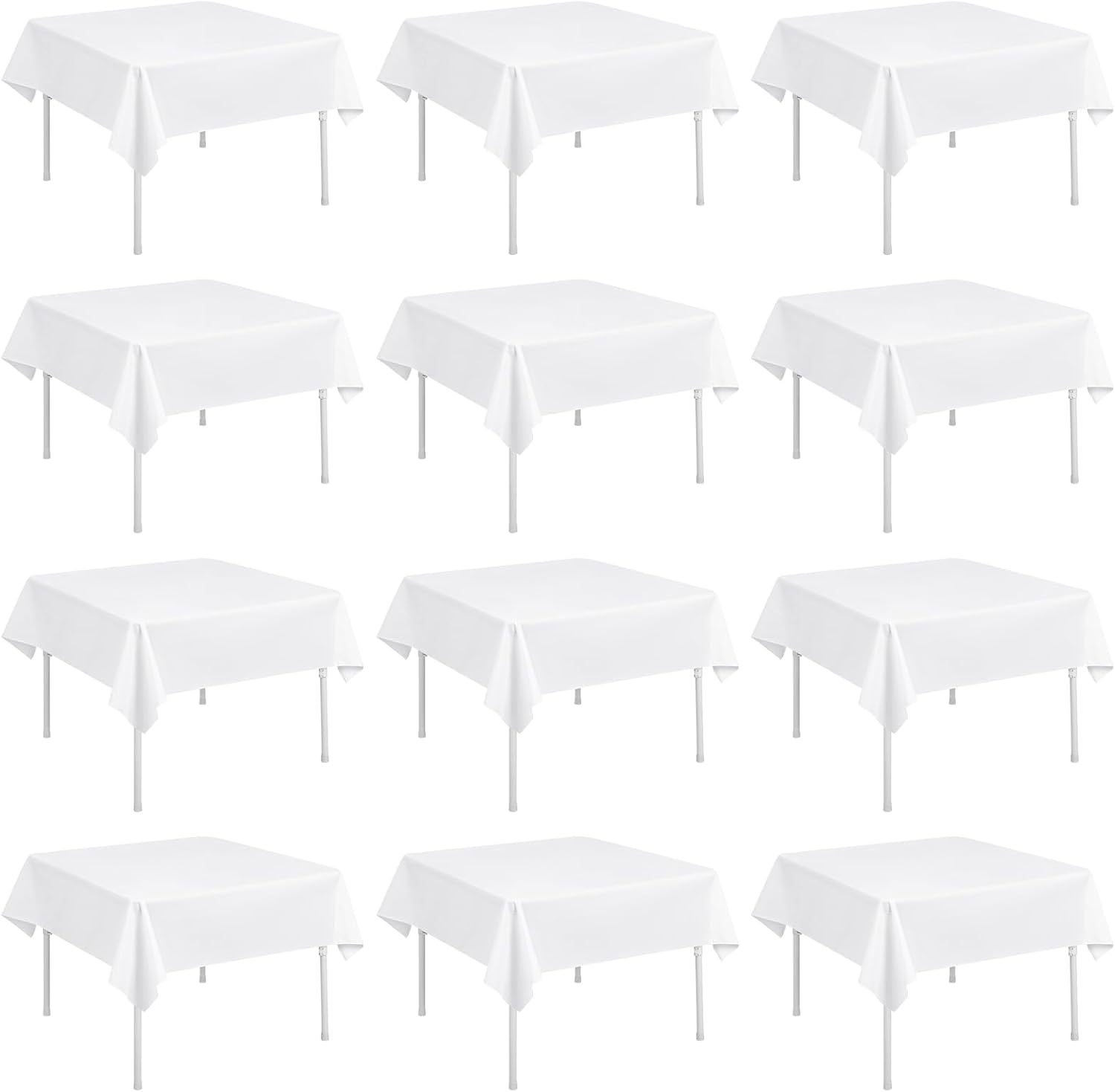 fani 12 Pack Square Tablecloth 52 x 52 Inch, White Tablecloth for Square Table, Washable Polyester Table Cloth, Fabric Table Cover for Wedding Parties Restaurant Buffet