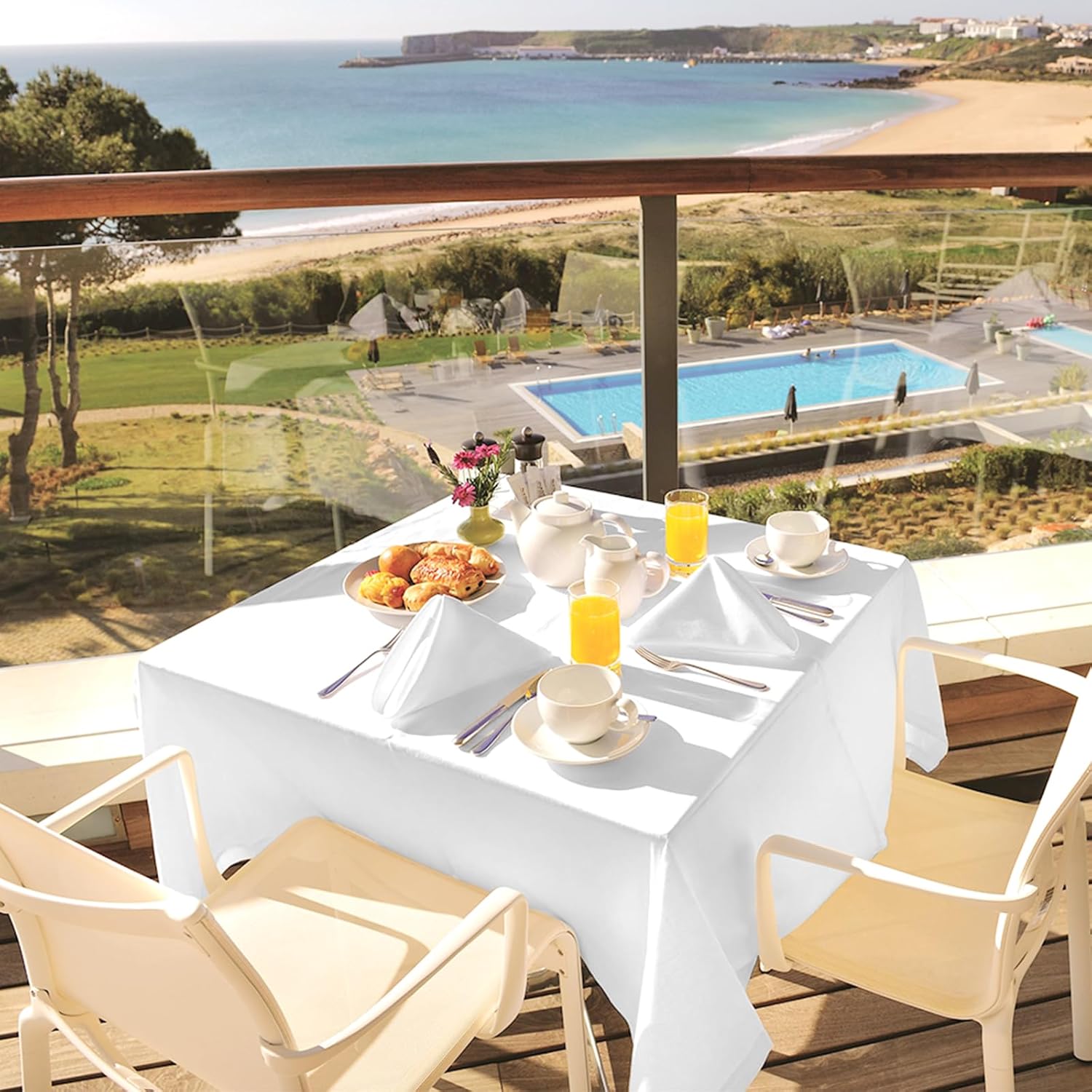 - đ„ăPremium Tablecloth FabricsăYou can get 12 pieces white tablecloth, our tablecloth is made of soft premium polyester fabric that for an always crisp, polished look. These materials are as skin-friendly as they are environmentally friendly. Protect and decorate your tables.