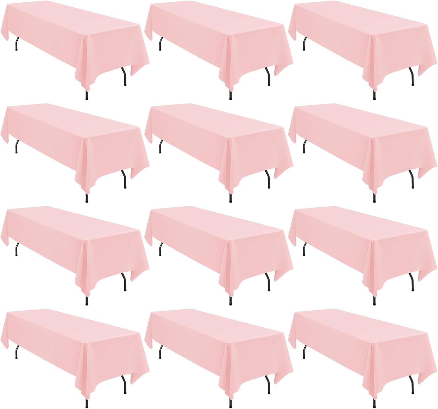 12 Pack 60 x 102 Inch Rectangle Tablecloth Pink Polyester Tablecloth for 6 Feet Rectangle Tables,Washable Fabric Table Cloth for Wedding Dining Table Buffet Parties Camping