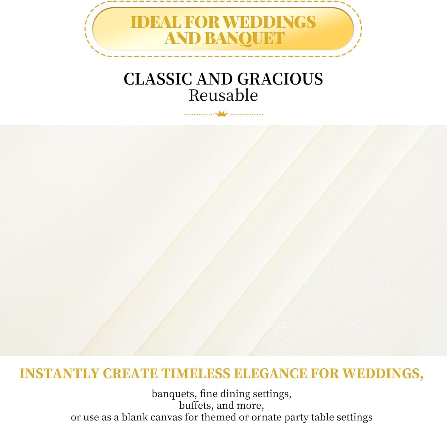 - đ„ăPremium Tablecloth FabricsăYou can get 12 pieces Ivory tablecloth, our tablecloth is made of soft 100% premium polyester fabric,polished look. These materials are as skin-friendly as they are environmentally friendly. Protect and decorate your tables.
