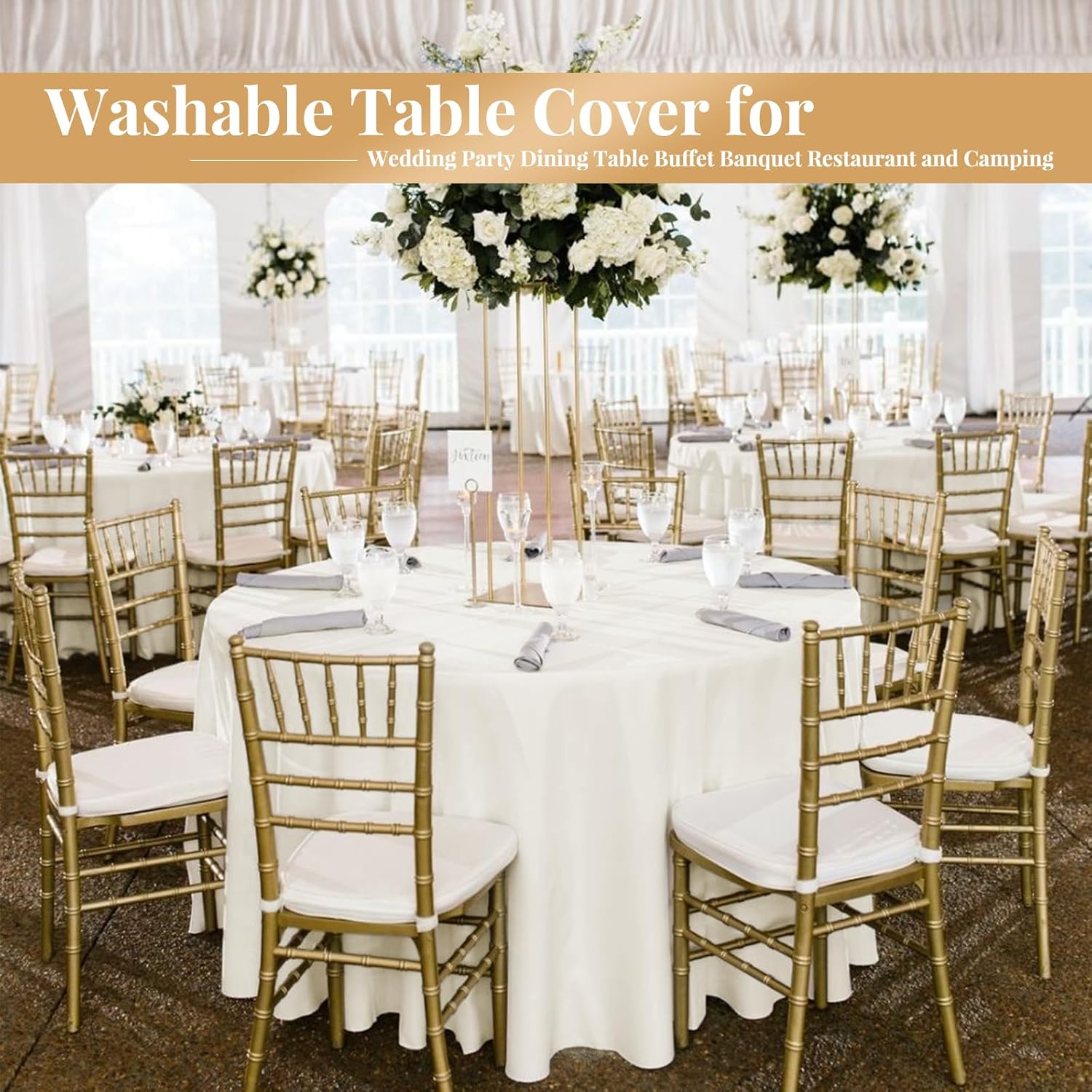 - đ„ăPremium Tablecloth FabricsăYou can get 12 pieces 90 inch Ivory round tablecloth, our tablecloth is made of soft 100% premium polyester fabric, polished look. These materials are as skin-friendly as they are environmentally friendly. Protect and decorate your tables.
