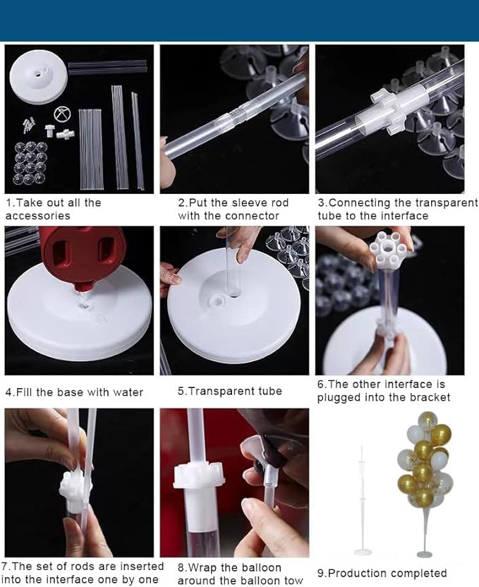 - ăEasy to Useă- Balloon stand kit is easy to assemble, you can assemble it in A Few Minutes, and very easy to disassemble and reuse. If You Want to Put This Outside With Slight Wind, We Recommend Using Double-Sided Tape on The Bottom of The Balloon Holder for Stability Outdoors.