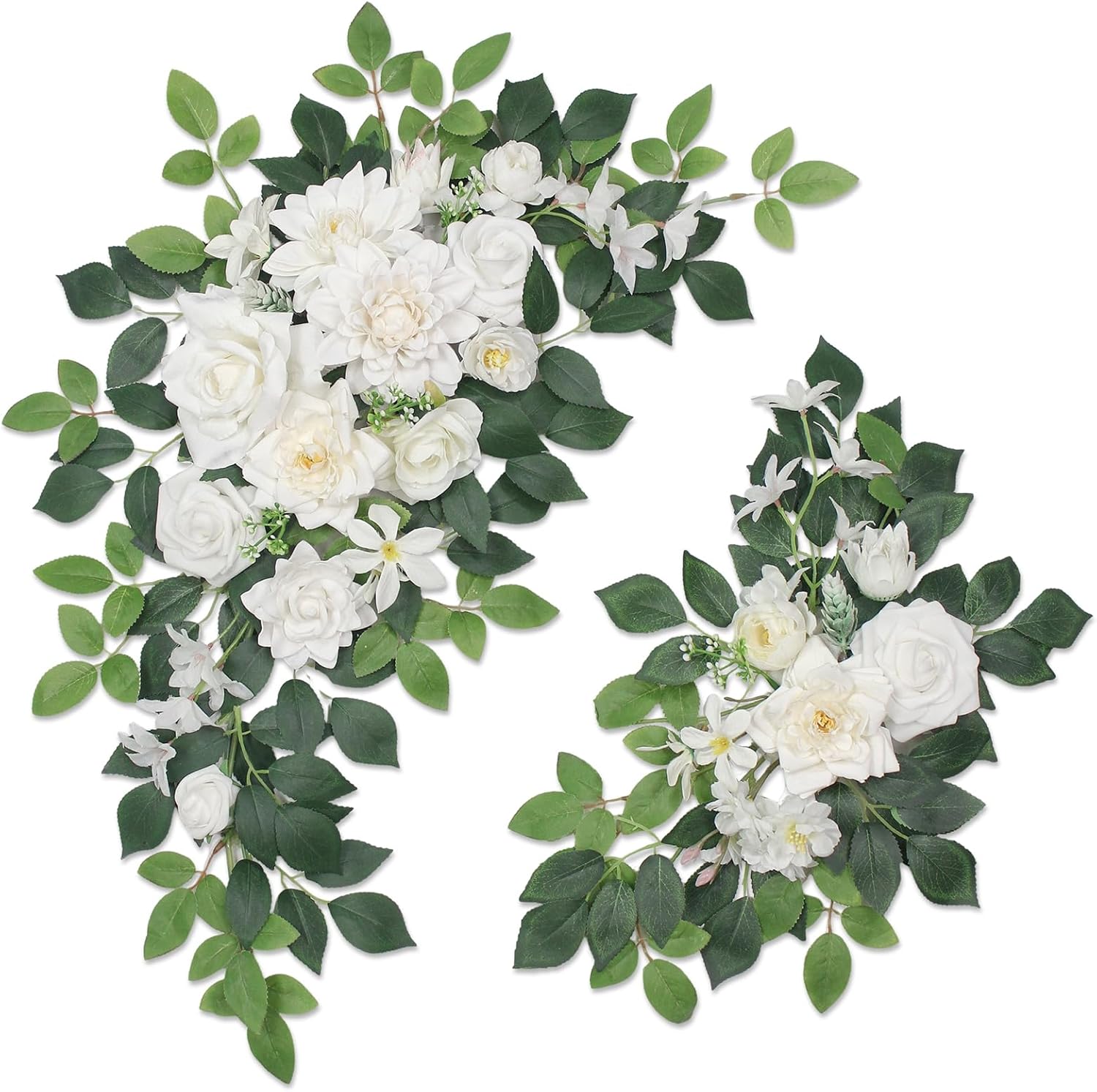 Pack of 2 Artificial Flowers for Backdrop Decoration, Wedding Arch Flowers,Reception Welcome Sign, Eucalyptus Garland, Suited to Aisle Decor and Wedding Arches(White)