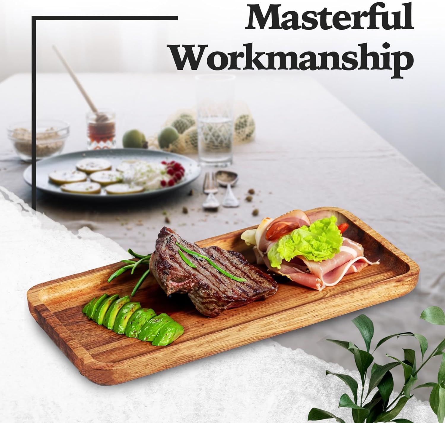 - Premium 100% Acacia Wood: Crafted from naturally fine-textured acacia wood, these trays are highly scratch-resistant and safe for serving food. Ideal for parties, BBQs, and buffets, they add a touch of sophistication to any event.