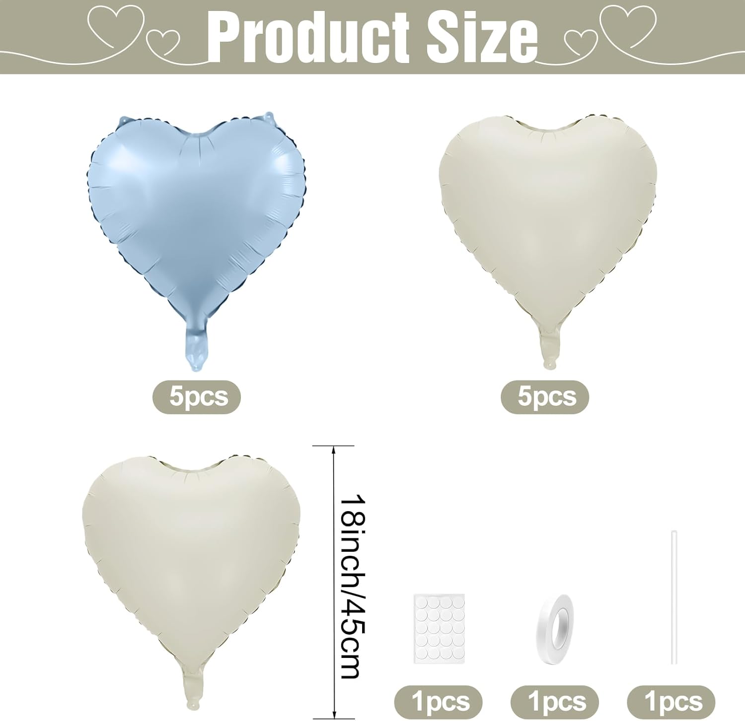 - 10PCS HEART BALLOONS:You will get 5pcs 18Inch baby blue heart balloons,5pcs 18Inch cream white heart balloons,ribbon.The baby blue cream white heart shaped balloons suitable for any party, can leave unforgettable memories for the guests attending the party, 18Inch is large enough to better embellish your party.
