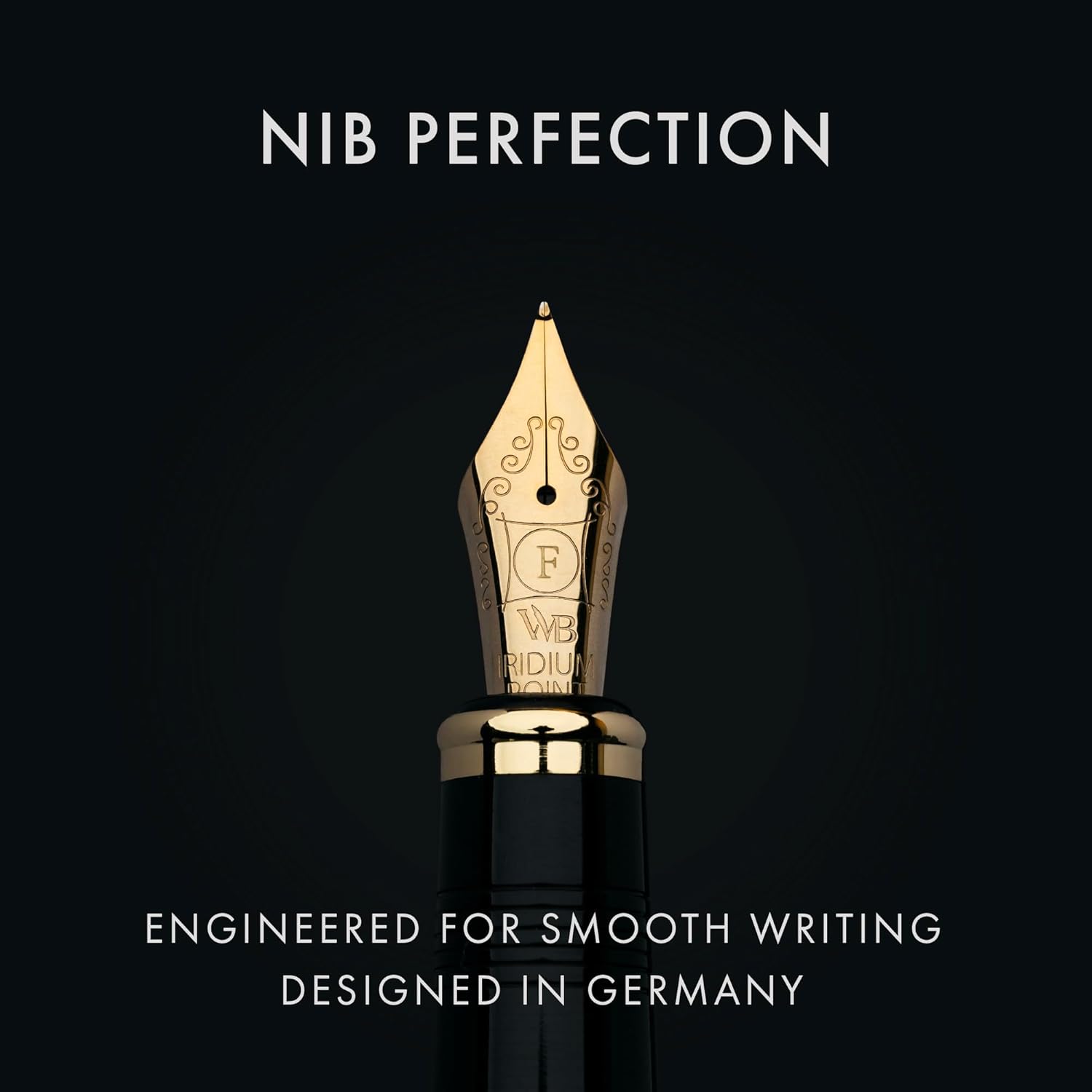 Wordsworth & Black Primori Fountain Pen Set [Black Gold]; Fine Nib, Gift Case, 24 Ink Cartridges, Refill Converter, Manual; Journaling, Calligraphy, Smooth Writing Pens; Left and Right Handed