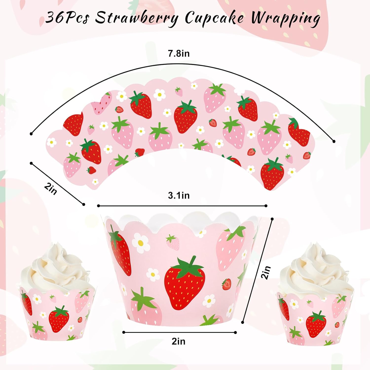- Delicate Decorations - Our strawberry cupcake wrappers can well add a adorable touch to your dessert decorations, they can be applied for birthday, baby shower and other occasions, leave everyone a deep impression.